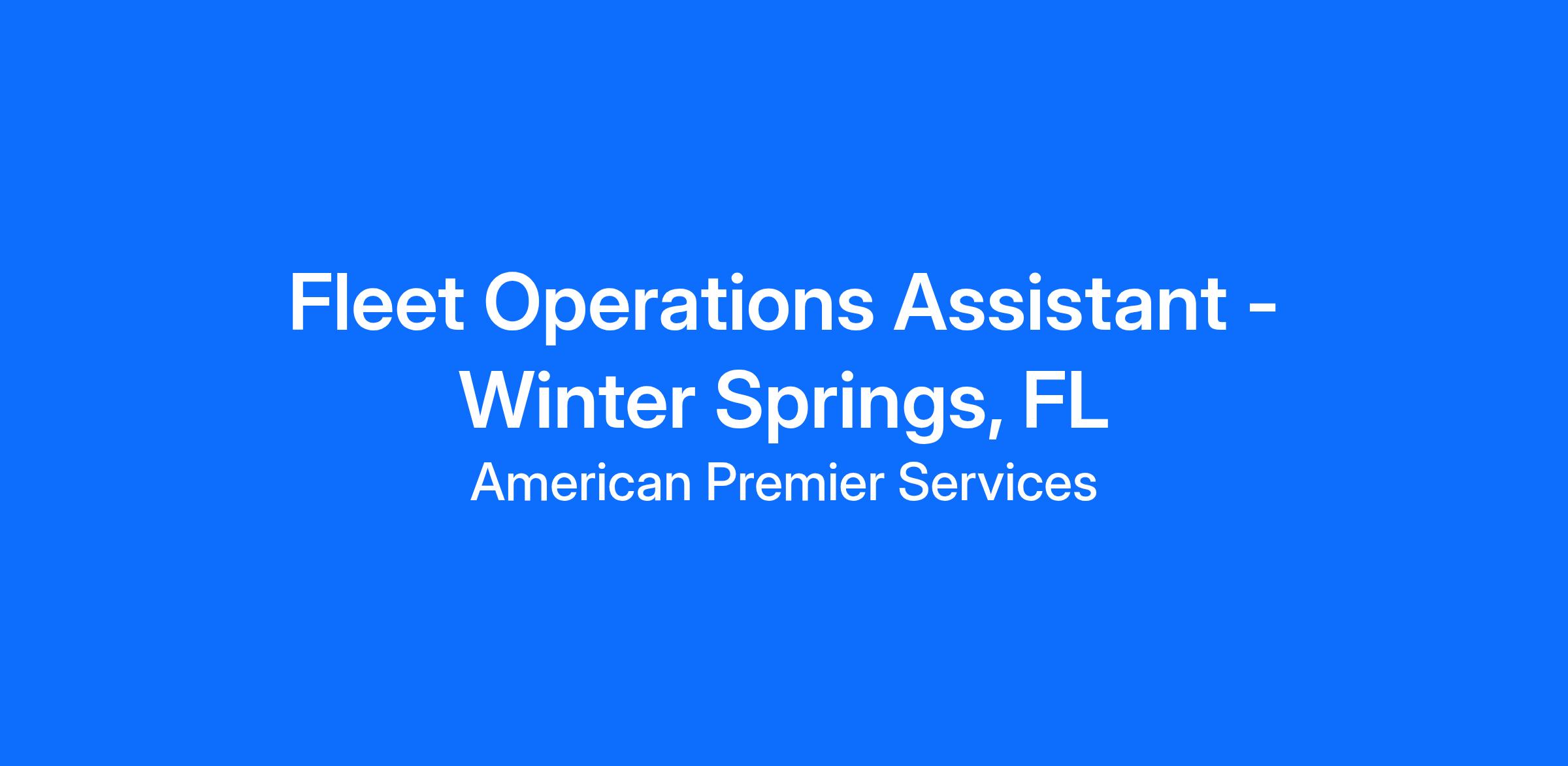 Fleet Operations Assistant - Winter Springs, FL (Entry-Level)