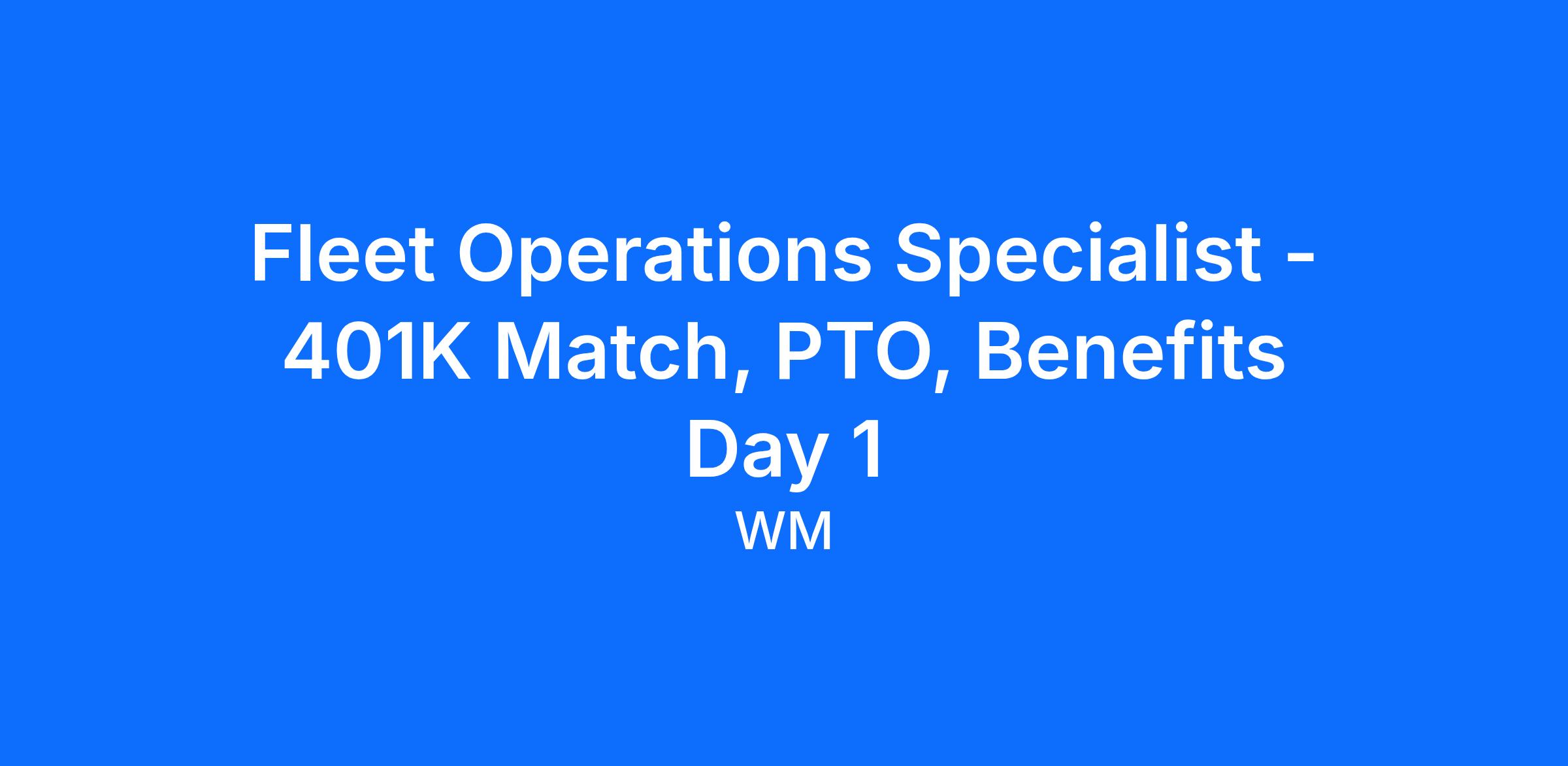 At WM, each eligible employee receives a competitive total compensation package including Medical, Dental, Vision, Life Insurance and Short Term Disability. As well as a Stock Purchase Plan, Company match on 401K, and more! Our employees also receive Paid Vacation, Holidays, and Personal Days. Please note that benefits may vary by site.