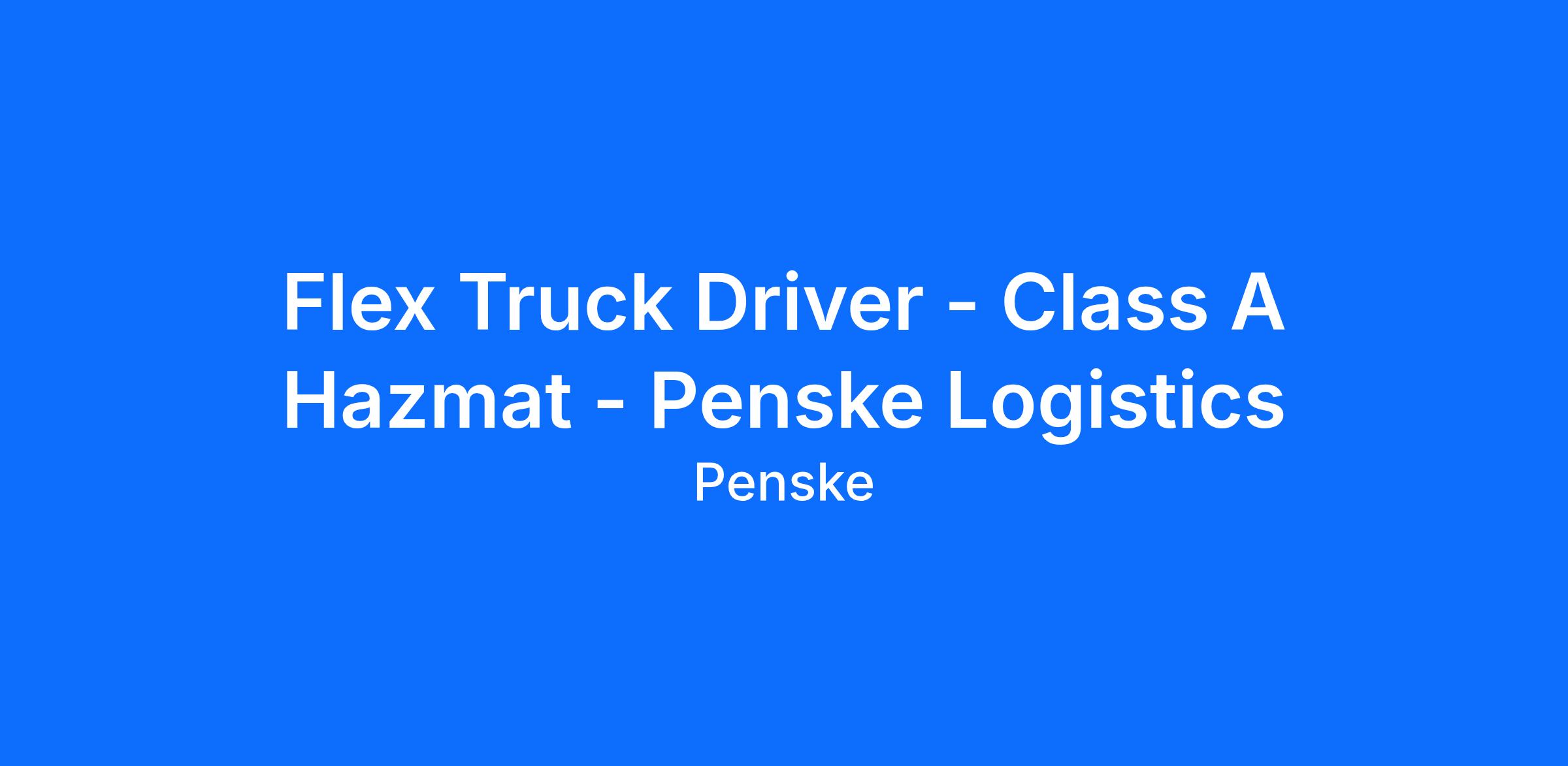 Flex Truck Driver - Class A Hazmat - Penske Logistics