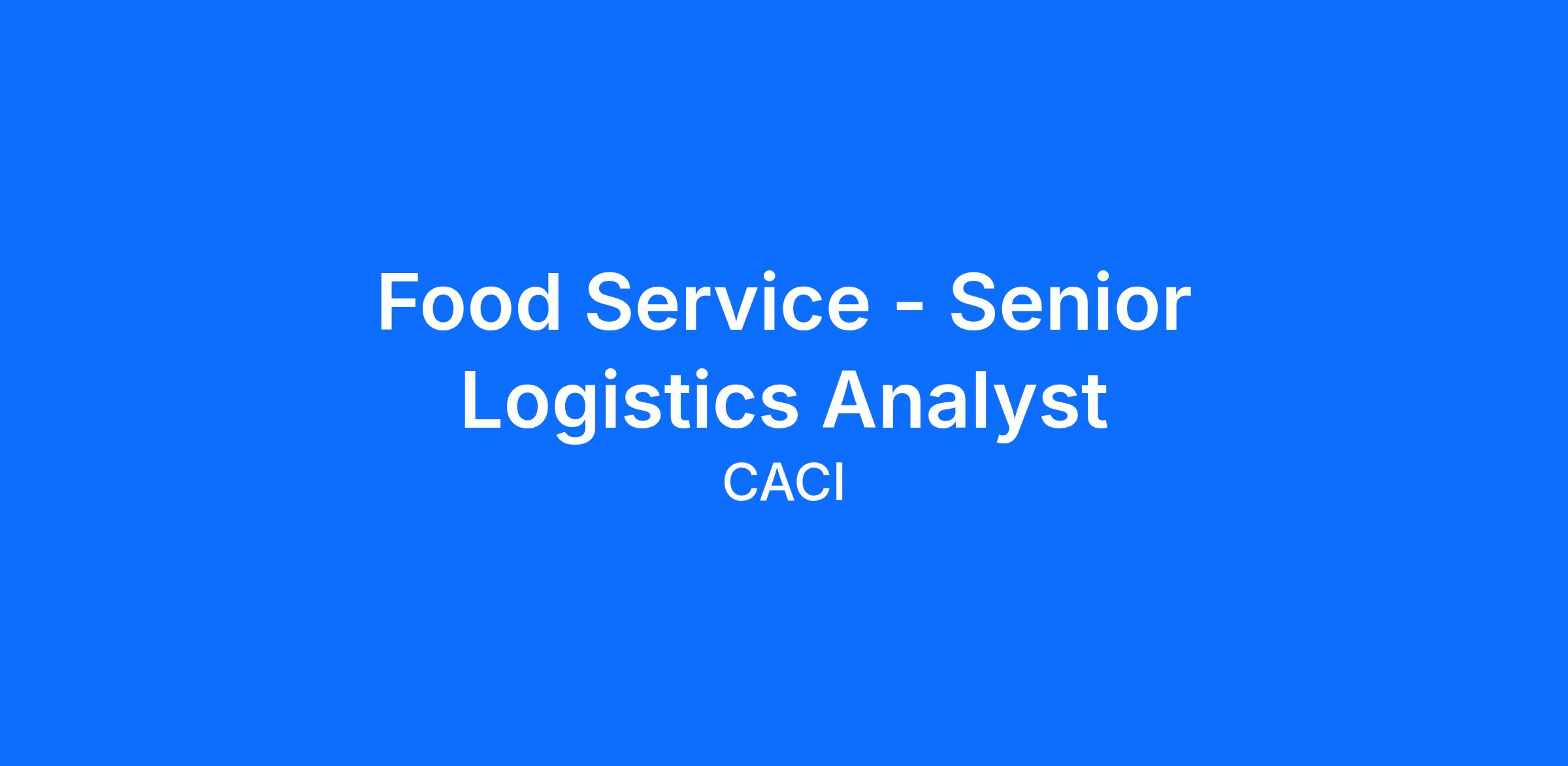 CACI has an immediate opening for a Senior Logistics Analyst (SLA) to provide Naval Forces Logistics (NFL) tasking support at COMNAVSURFPAC (CNSP) located at Naval Base San Diego, CA. The SLA will provide Food Service Policy Support to all CNSP activities.