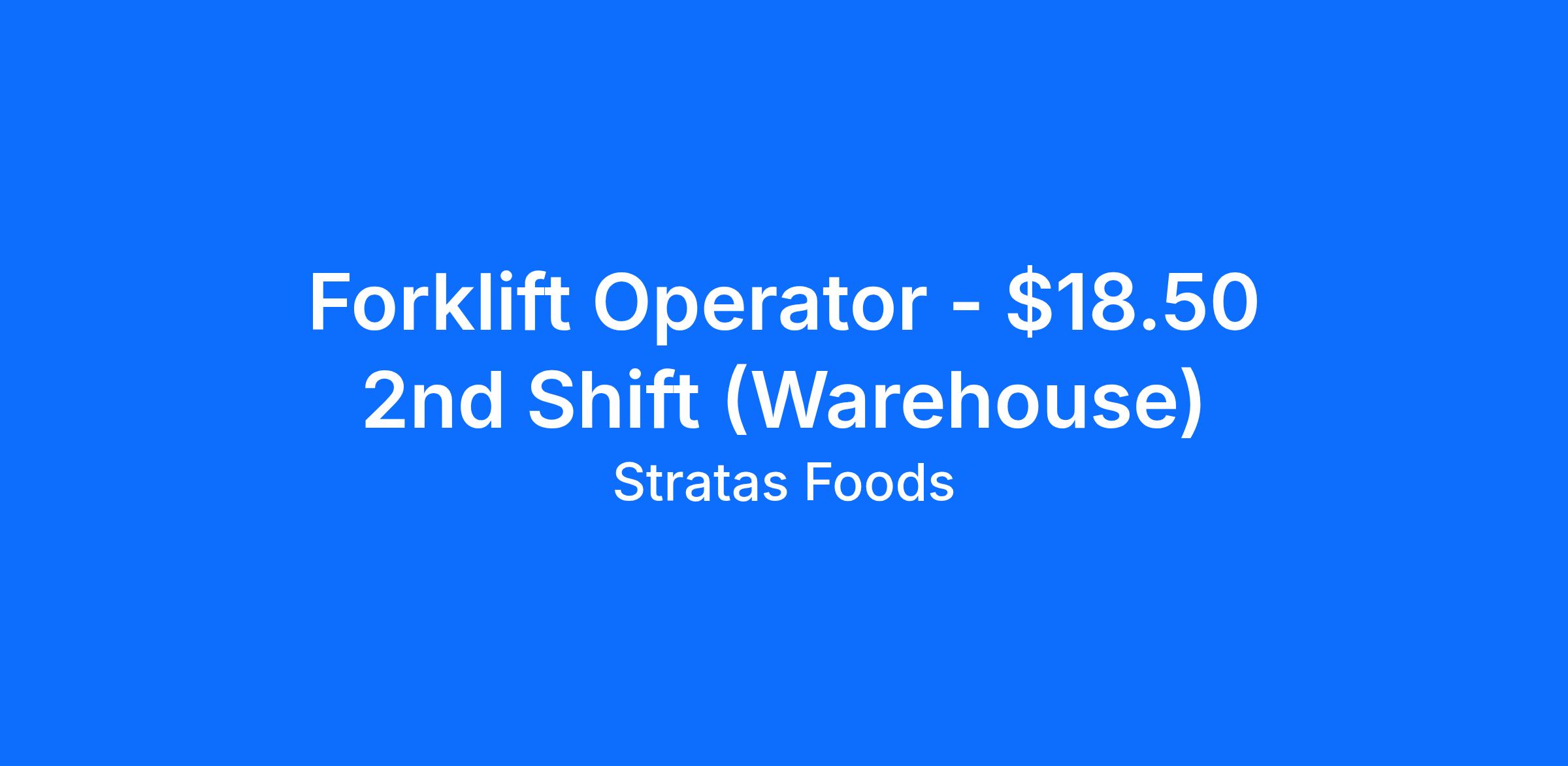 This is a great position for forklift drivers, forklift operators, forklift material handlers, warehouse forklift operators, and manufacturing warehouse operators and material handlers.