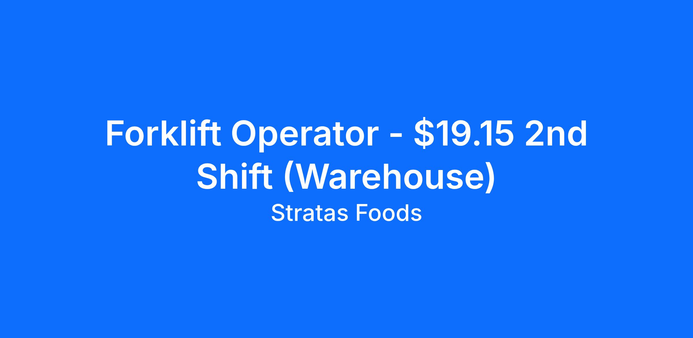 This is a great position for forklift drivers, forklift operators, forklift material handlers, warehouse forklift operators, and manufacturing warehouse operators and material handlers.