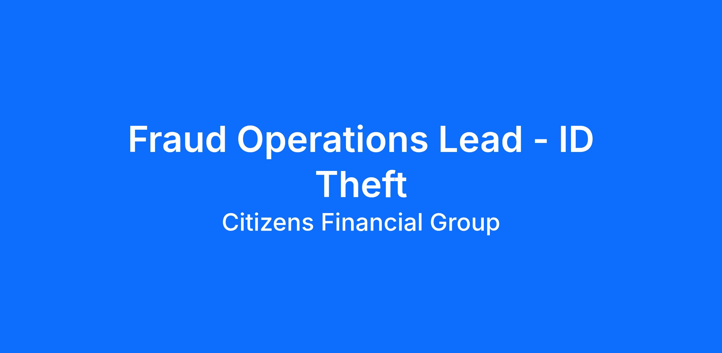 Fraud Operations Lead - ID Theft