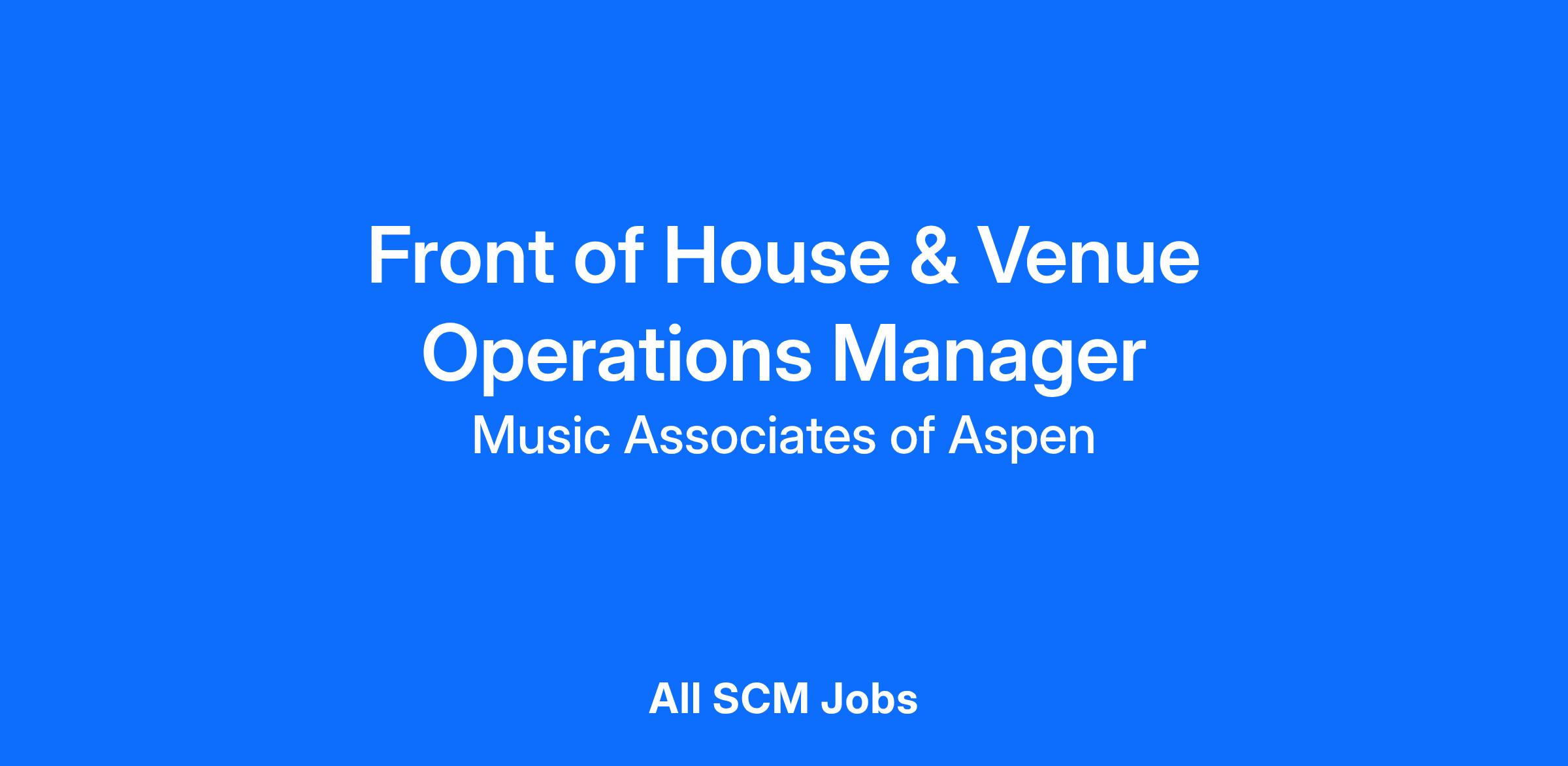 The Aspen Music Festival & School (AMFS) Front of House & Venue Operations Manager leads the Front of House (FOH) team, which is responsible for all FOH operations from arrival to the end of each concert, ensuring exemplary customer service and safety to all AMFS patrons. The FOH team is a team of nine, led by the Front of House & Venue Operations Manager and Assistant Front of House Manager, and is present for all open concerts, rehearsals and events which occur at the festival's main performance venues in Aspen, Colorado. These facilities include our 2050-seat Klein Music Tent and the 500-seat Harris Concert Hall. Additionally, the FOH team is involved in events in the local Aspen Community, including recitals at Aspen Chapel, Aspen Center for Physics, Pitkin County Library, and more.