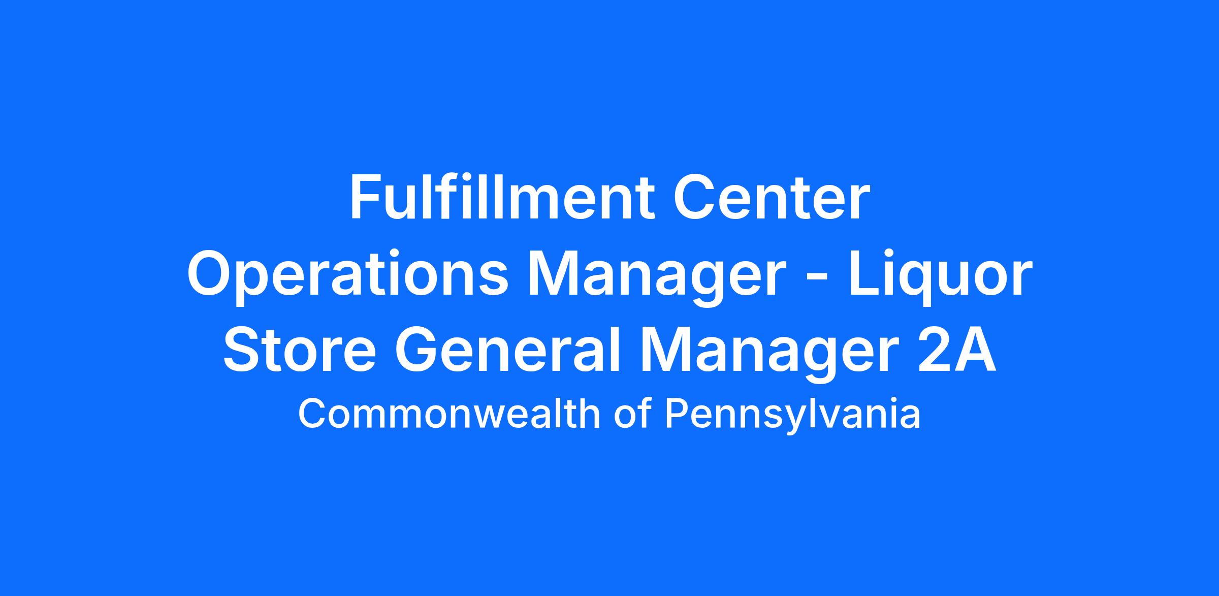 We are seeking an experienced and results-driven Fulfillment Center Operations Manager (Liquor Store General Manager 2A) to lead the operations of our fulfillment center in Marshalls Creek. In this role, you will manage and oversee the development and implementation of fulfillment center (FC) operations and projects for the Pennsylvania Liquor Control Board (PLCB) through management and control of a statewide network of regional fulfillment center operations to support a robust and growing wholesale customer network.