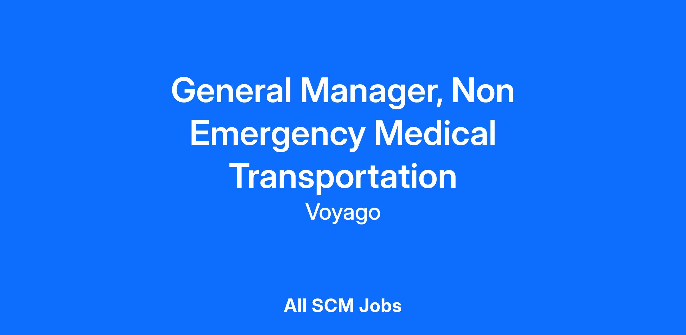 DescriptionVoyago is hiring for an General Manager for our Non Emergency Medical Transportation division to oversee a region in Southern and and Central Ontario.