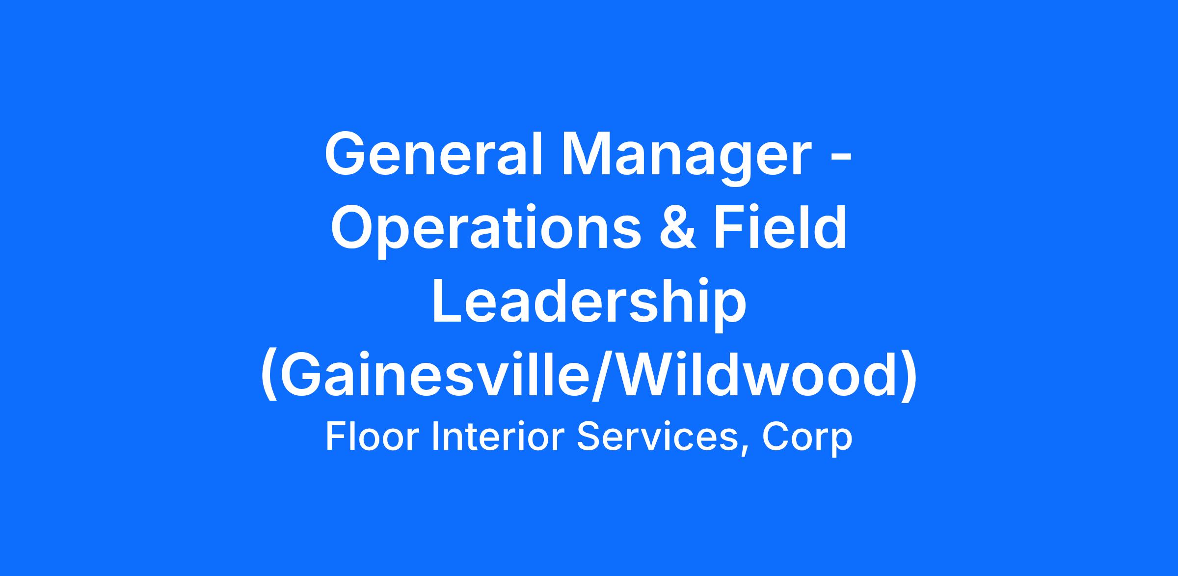 General Manager – Operations & Field Leadership (Gainesville / Wildwood)