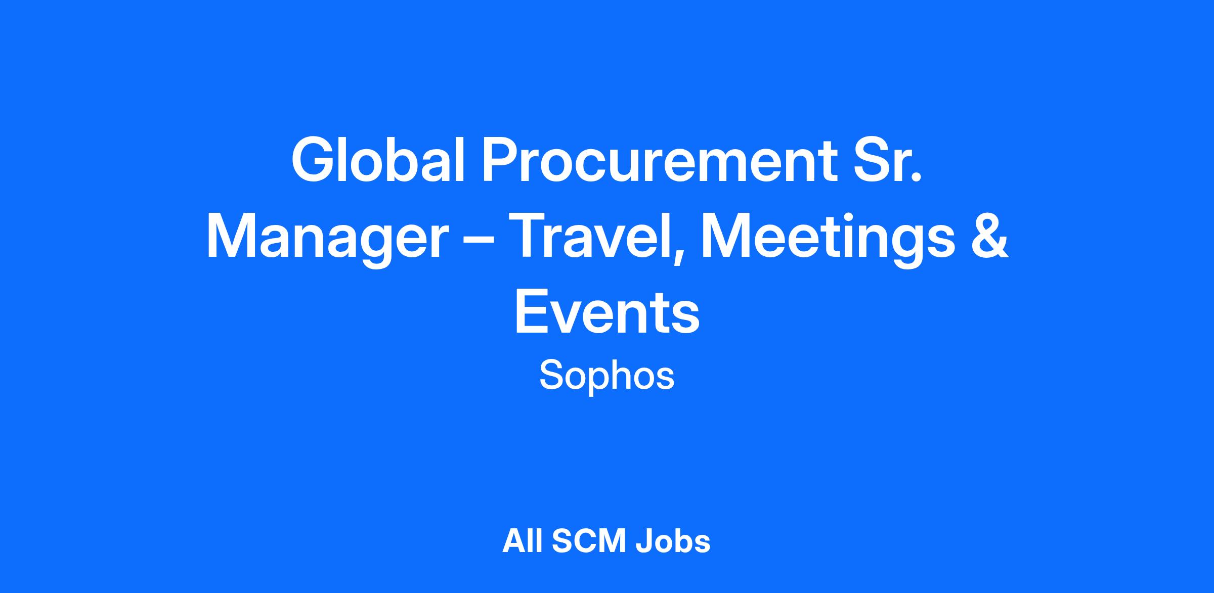 The Global Procurement Sr. Manager for Travel, Meetings & Events will report to the Global Procurement Director. The position will have key responsibility for all aspects of sourcing for these categories. This includes ownership of all negotiations related to airlines, hotels, meeting facilities, corporate credit cards, travel agencies, and booking tools. In addition, the role partners with respective key stakeholders across the company to identify and prioritize needs, will understand the market to determine appropriate sources of supply, and benchmark/baseline the current state. This person is also responsible for developing the sourcing strategy for these categories. This includes, but is not limited to, managing and leading periodic supplier business reviews (i.e., EBs, QBRs, etc.), leading the competitive process (i.e., RFx, Auctions, etc.), supplier selection, commercial negotiations, deal finalization, and similar Senior Category Manager competencies. Also, they will partner with internal Shared Service organizations (i.e. Legal, Risk, Privacy, Insurance, Finance, Accounts Payable, etc.) for onboarding, contracting, etc. In addition, they will partner closely with Executive Assistants across the company to prioritize needs and establish discounts with properties and airlines that fit our travel needs. In addition, this person will manage the Travel Policies and guidelines for all Sophos users, including setting guidelines, reporting on compliance, and identifying opportunity areas for savings. The right candidate will have excellent teamwork skills and partnering ability with multiple departments and stakeholders, as well as being able to present and communicate effectively (both oral and written) with all levels of management.
