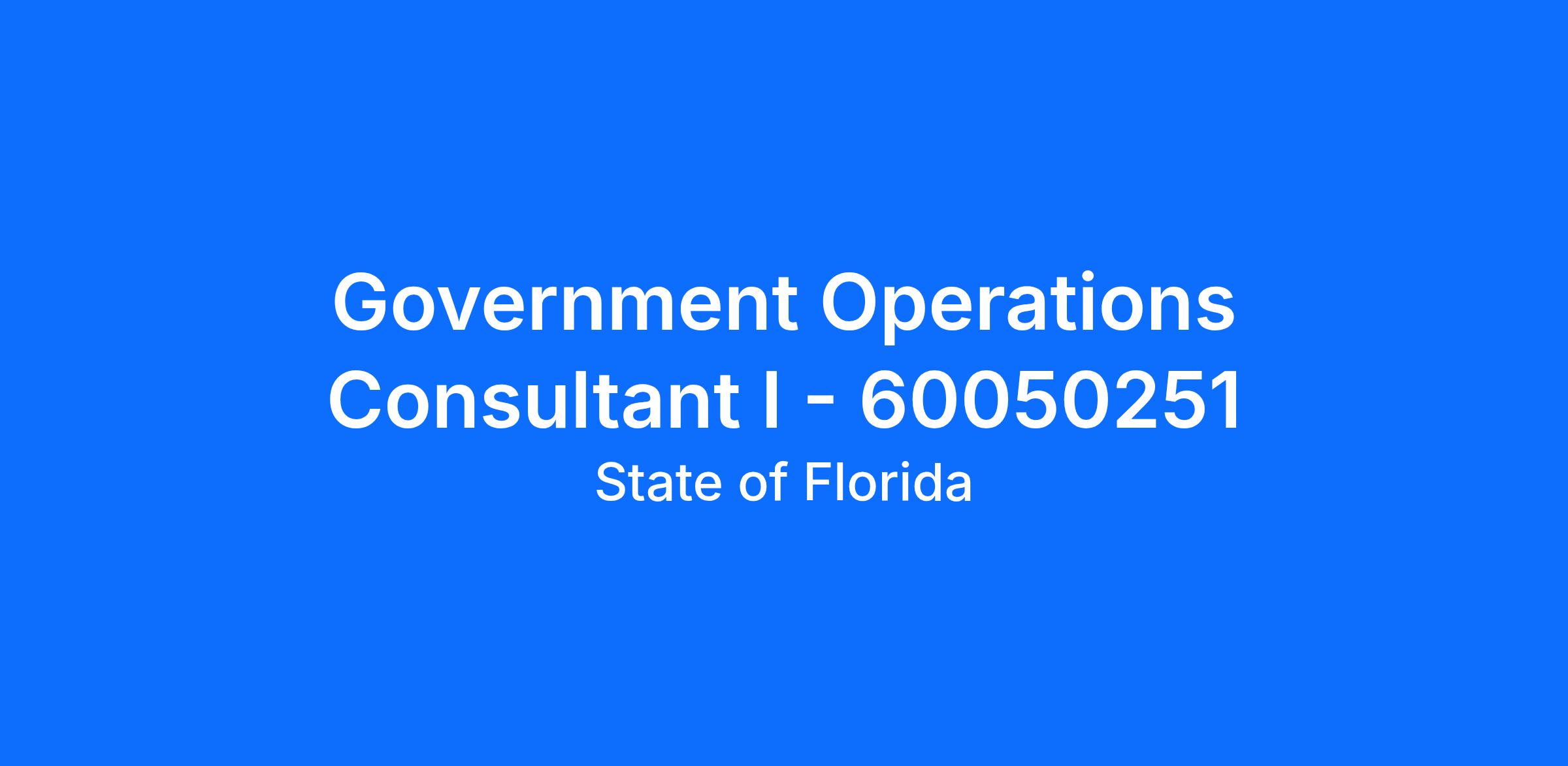 Working Title: GOVERNMENT OPERATIONS CONSULTANT I - 60050251