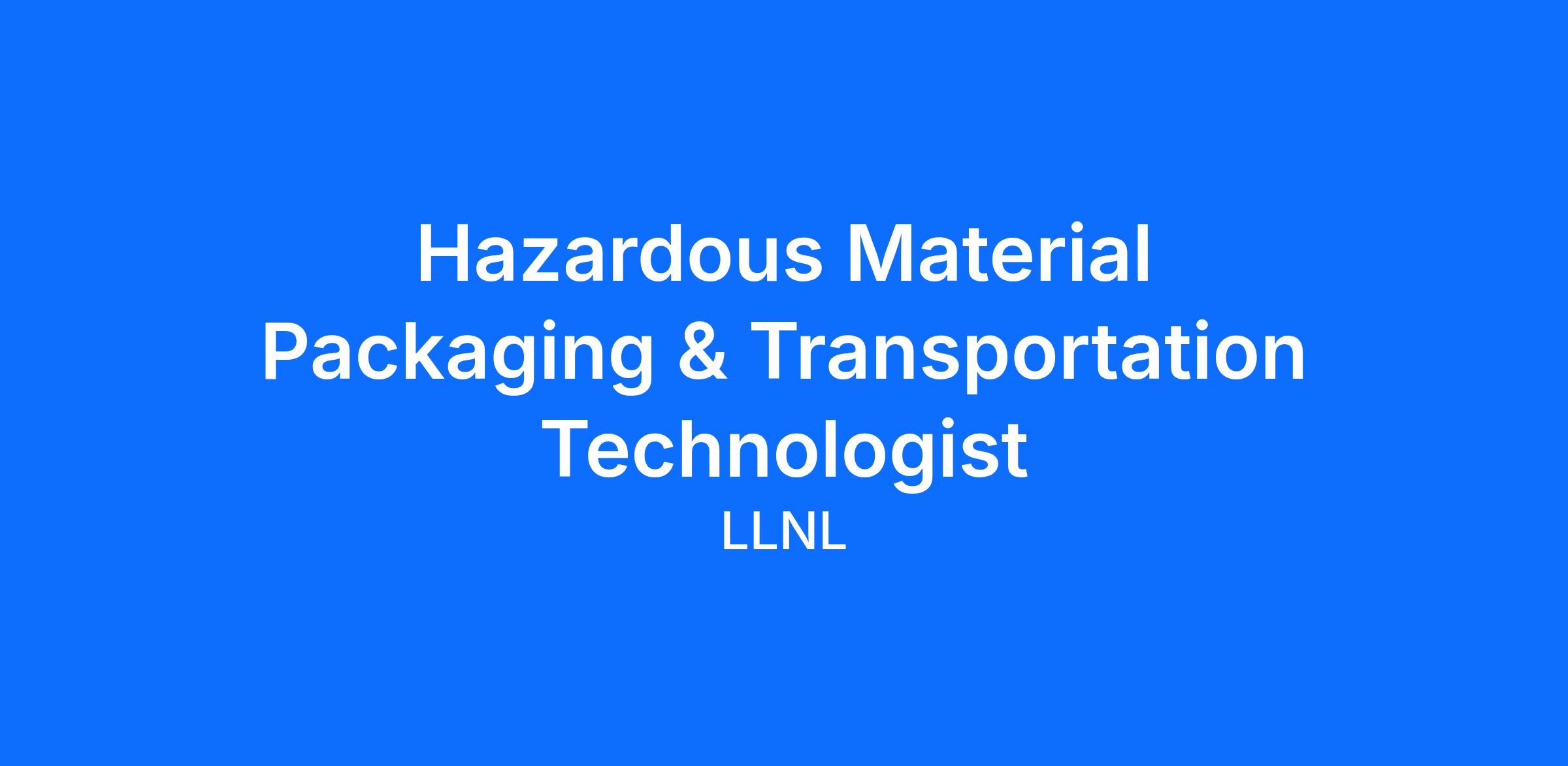 We have an opening for a Hazardous Material Packaging and Transportation Technologist/Senior Hazardous Material Packaging and Transportation Technologist at Site 300 to provide general technical support of transportation, shipping/receiving, processing, packaging, storage and accounting of explosive/radioactive/hazardous/classified materials to programs at LLNL. You will perform tasks related to the control and accountability of controlled materials, maintain records, and keep portable measurement equipment and instruments in good operating condition. This position is in the Controlled Materials Group (CMG) within the Packaging and Transportation Safety Functional Area (PTSFA)/Packaging and Transportation Safety (PATS) Program within the Environment Safety and Health (ES&H) Directorate.