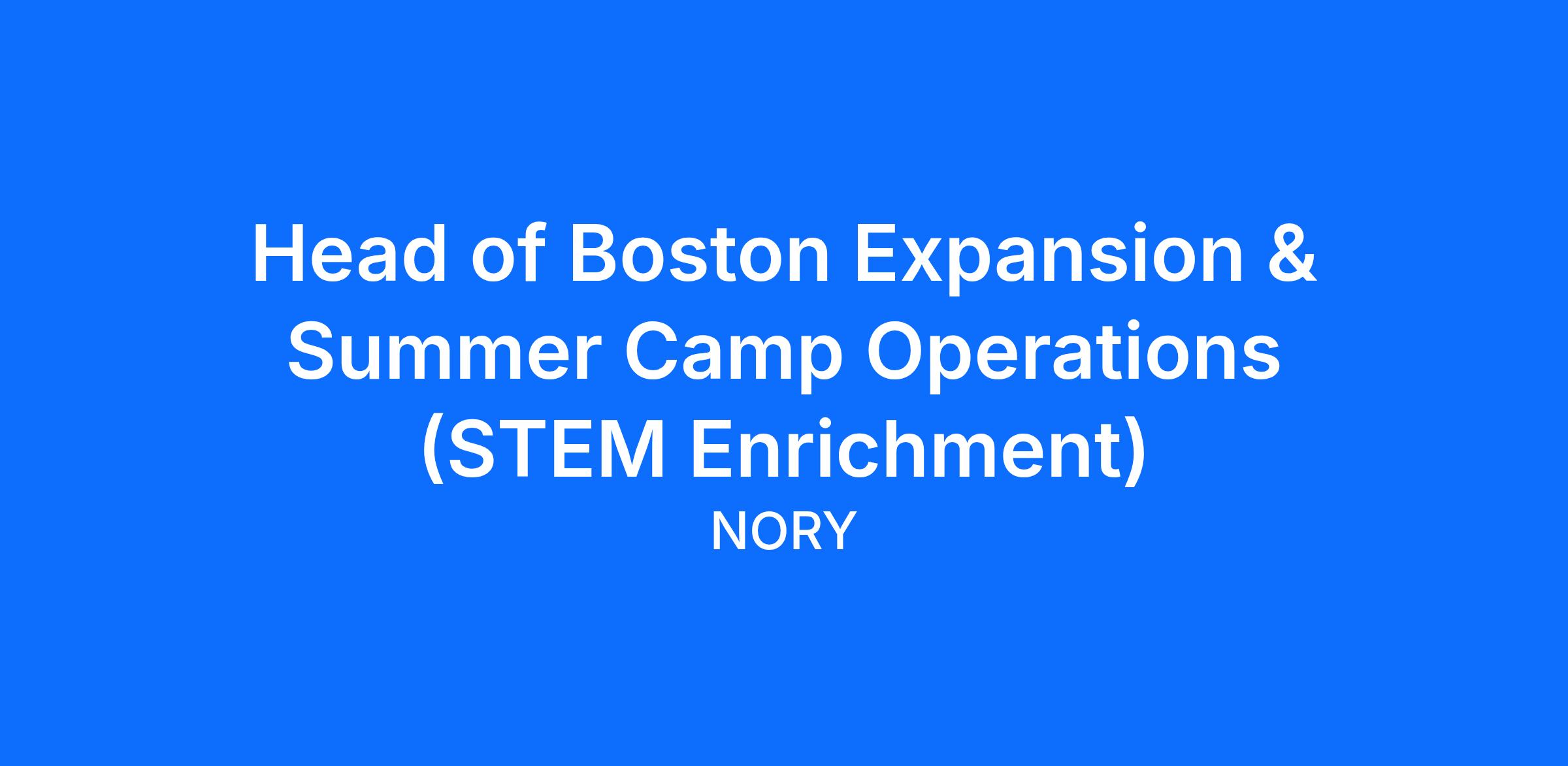 We are seeking a Regional Director to lead our expansion into Boston. This leadership position is perfect for someone who enjoys entrepreneurship, is energized by building new initiatives, and thrives in a fast-paced environment. You will play a key role in launching our STEM programs in the region and establishing NORY’s presence.