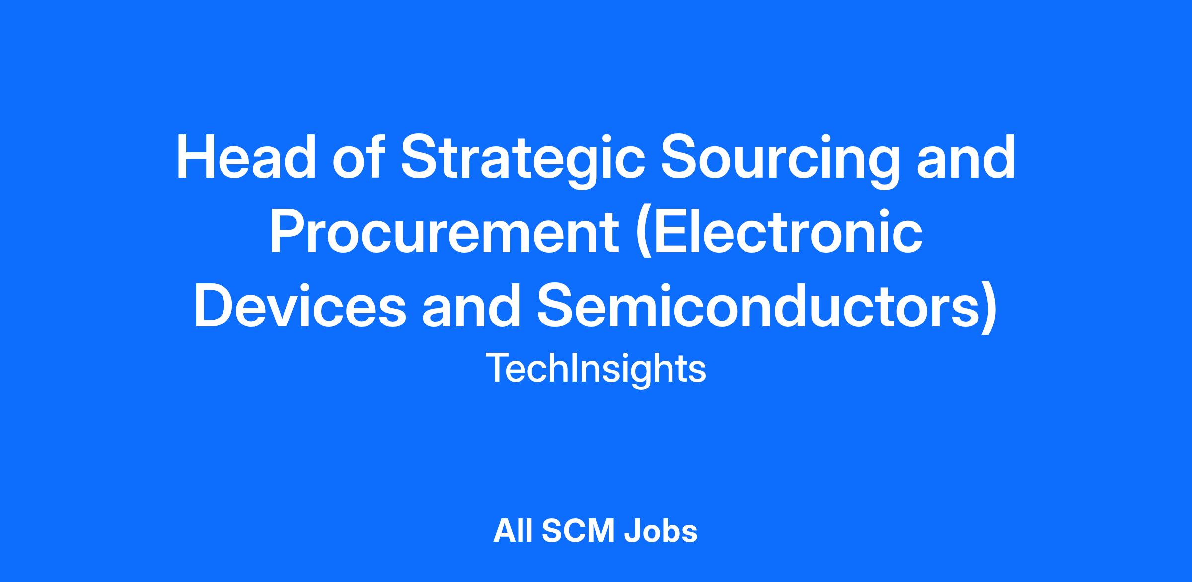 THE OPPORTUNITY: We are seeking an exceptional Head of Strategic Sourcing and Procurement to lead our global procurement strategy for the electronic devices and semiconductor components that power our industry-leading reverse engineering and teardown analysis. This senior leadership role will be responsible for developing and executing comprehensive sourcing strategies across consumer electronics, enterprise hardware, and advanced semiconductor technologies that enable our research teams to deliver the actionable intelligence our customers depend on. You'll build strategic partnerships with manufacturers, navigate complex international supply chains, and establish procurement channels that ensure TechInsights maintains its position as the most trusted source of semiconductor innovation intelligence.This role offers the opportunity to shape procurement strategies at the forefront of technological innovation, working cross-functionally with our research, legal, compliance, and finance teams to balance innovation access with risk management while maintaining the highest ethical sourcing standards. WHAT YOU’LL DO - Lead the development and implementation of a comprehensive global sourcing strategy for electronic devices including smartphones, laptops, servers, GPUs, CPUs, and specialized semiconductor components