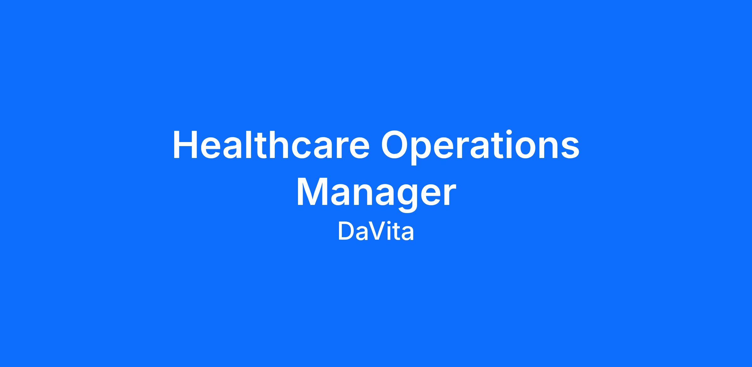 DaVita has an open position for a Healthcare Operations Manager (Facility Administrator) who must be an ambitious, operationally-focused and results-driven leader. You will directly impact patient care as the trusted front-line leader in an outpatient clinic setting. Health care experience is not required!