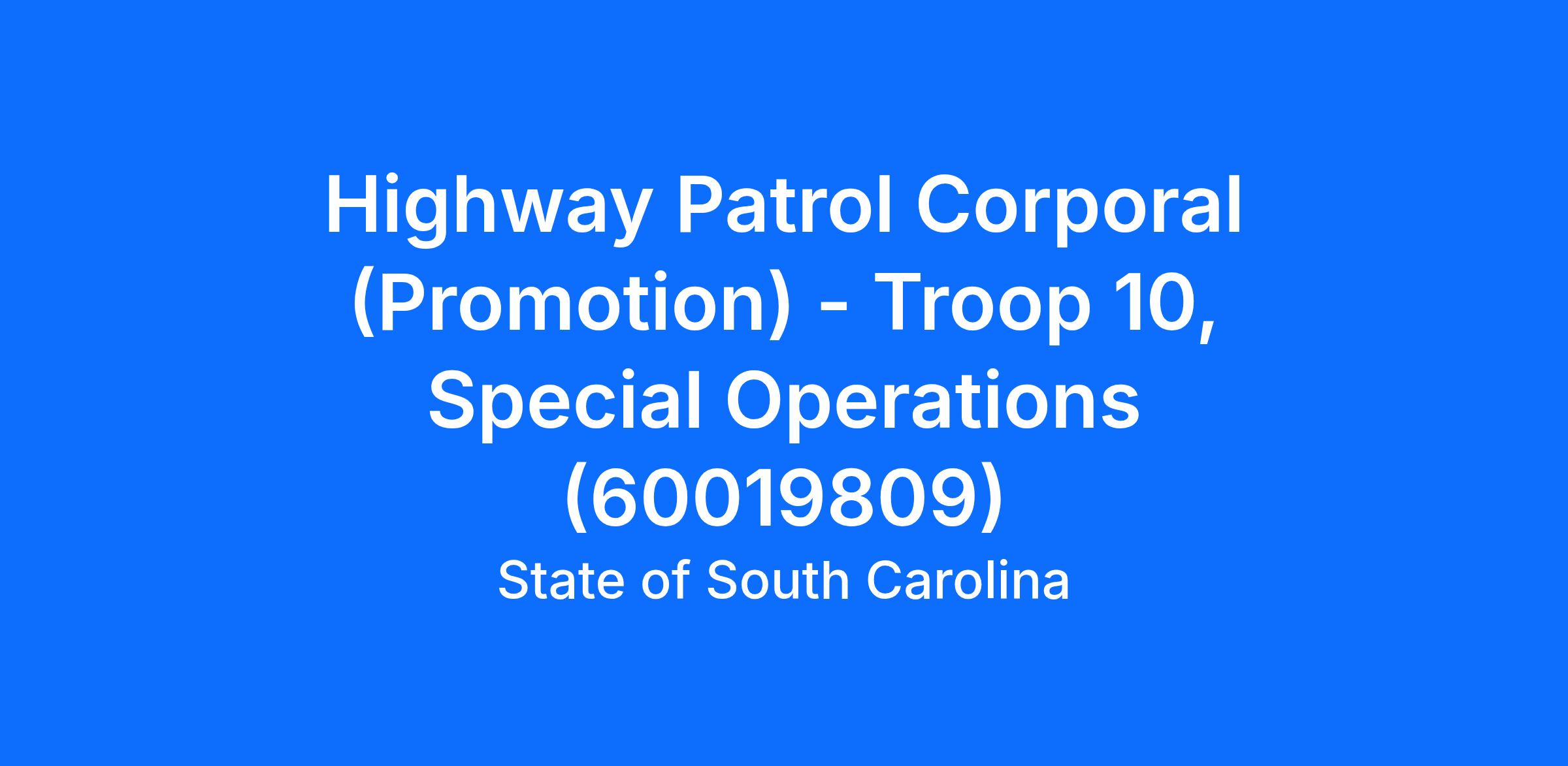 TIME IN GRADE – Must possess a minimum of five (5) years of continuous Certified Law Enforcement Service Time and a minimum of six (6) months of continuous service as a SCHP Lance Corporal or currently hold the rank of SCHP Master Trooper by the posted closing date of vacancy.