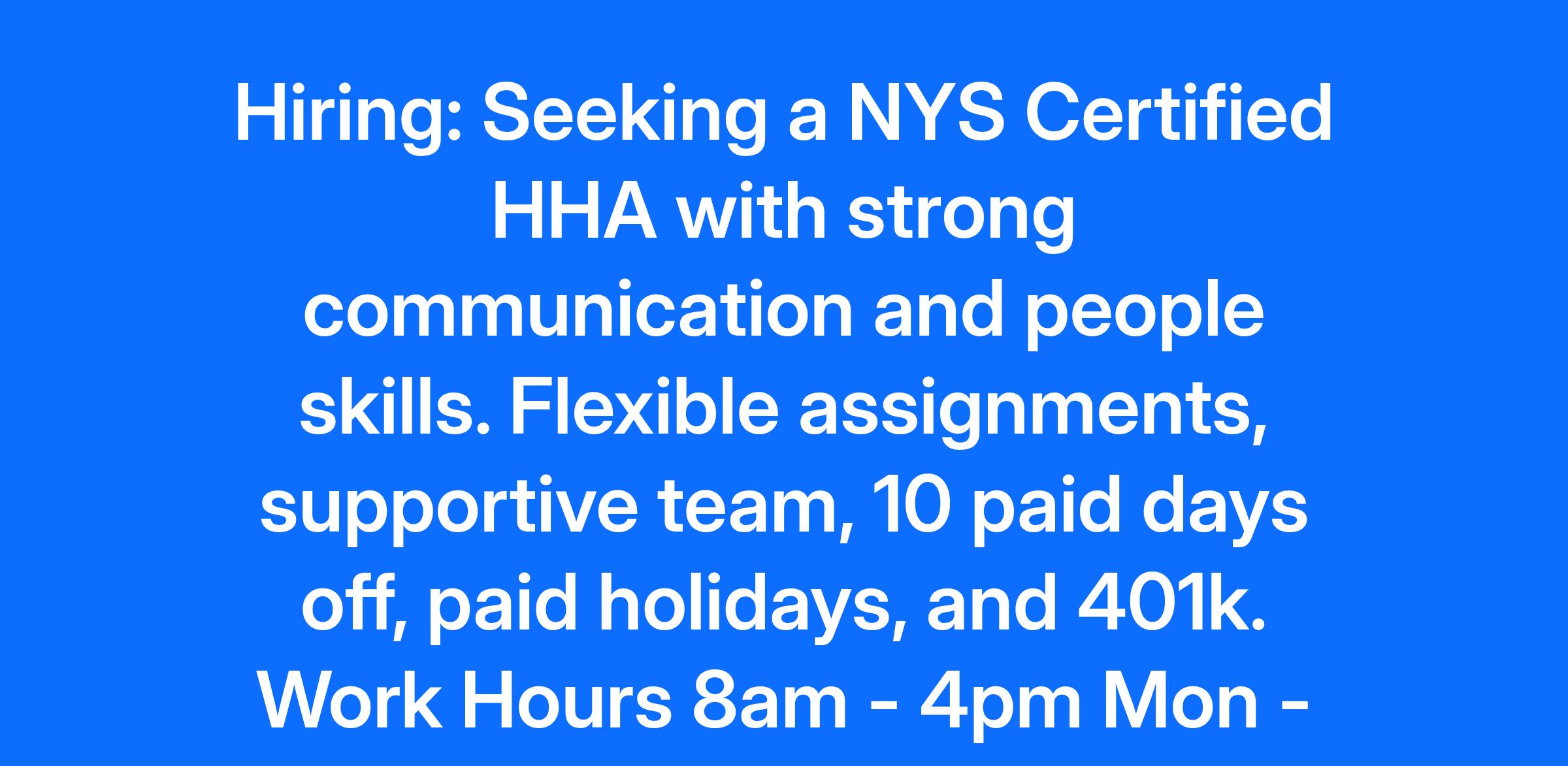 • Must have the maturity necessary for establishing and maintaining a good work relationship with the client, the client's family and agency personnel.