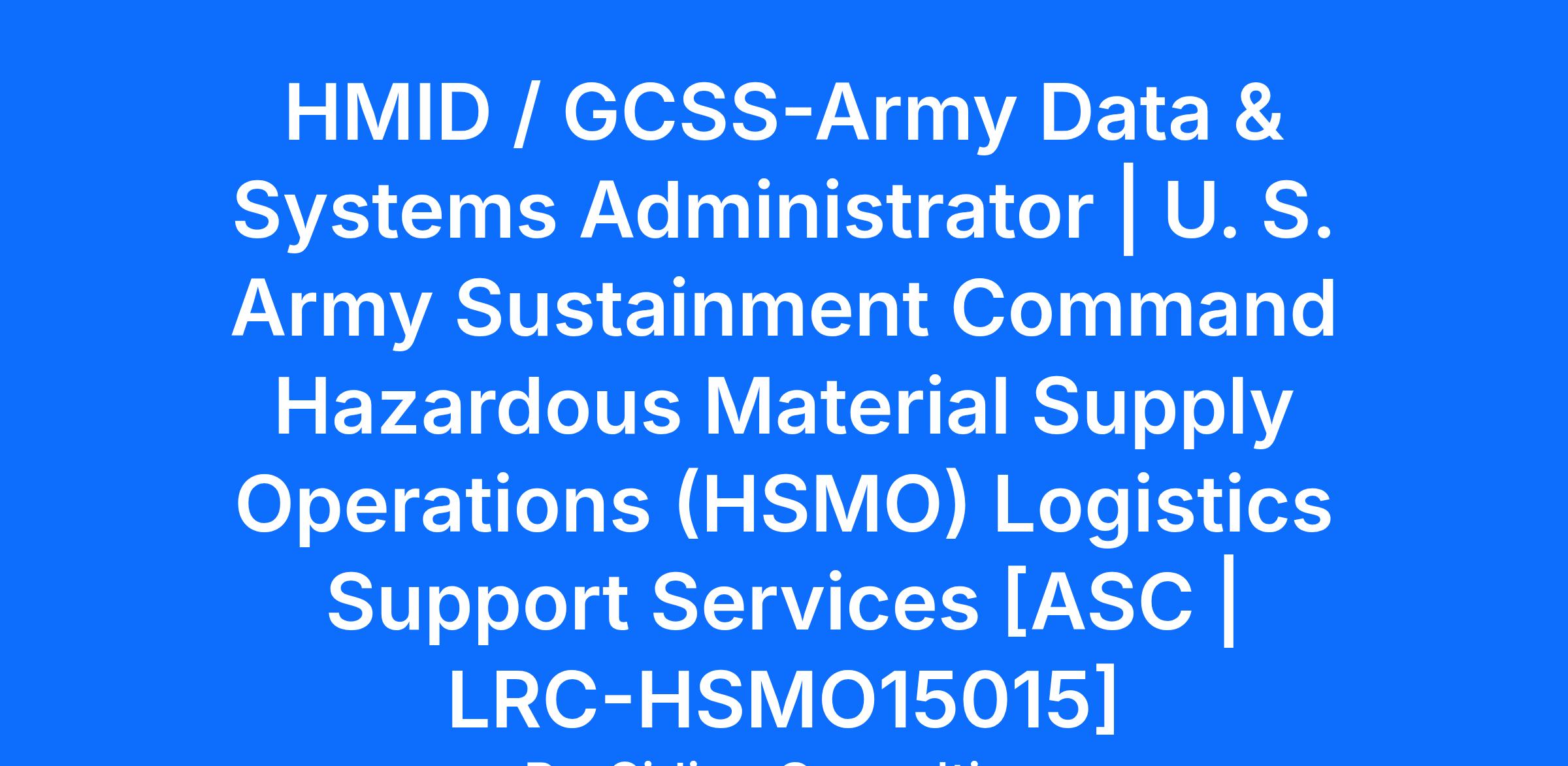 Desired Qualifications For HMID / GCSS-Army Data & Systems Administrator | U. S. Army Sustainment Command Hazardous Material Supply Operations (HSMO) Division Hazardous Material Supply Operations (HSMO) Logistics Support Services [ASC | LRC-HSMO15015] (ASC | LRC-HSMO15015) Candidates: