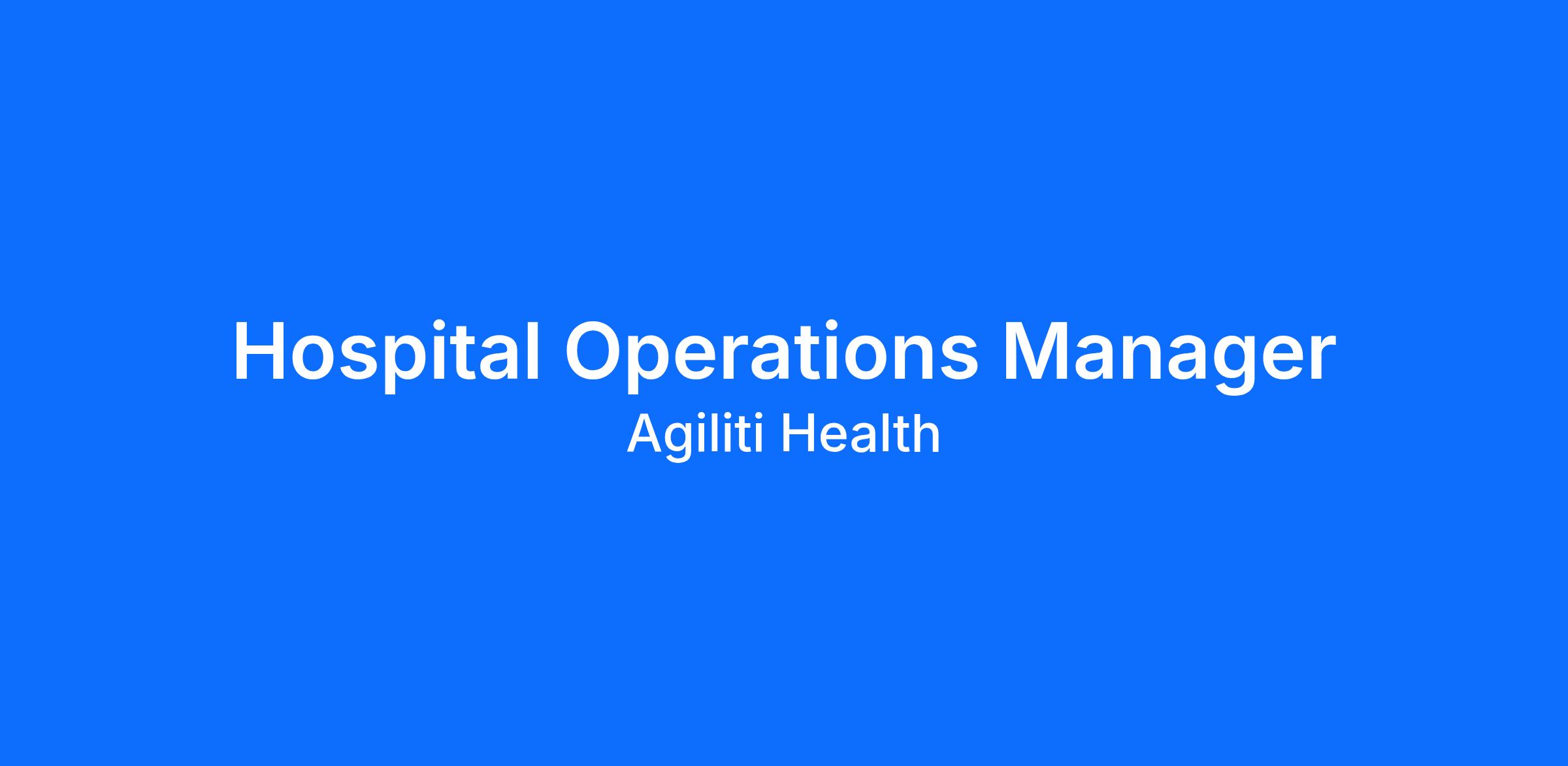 Hospital Operations Manager I: