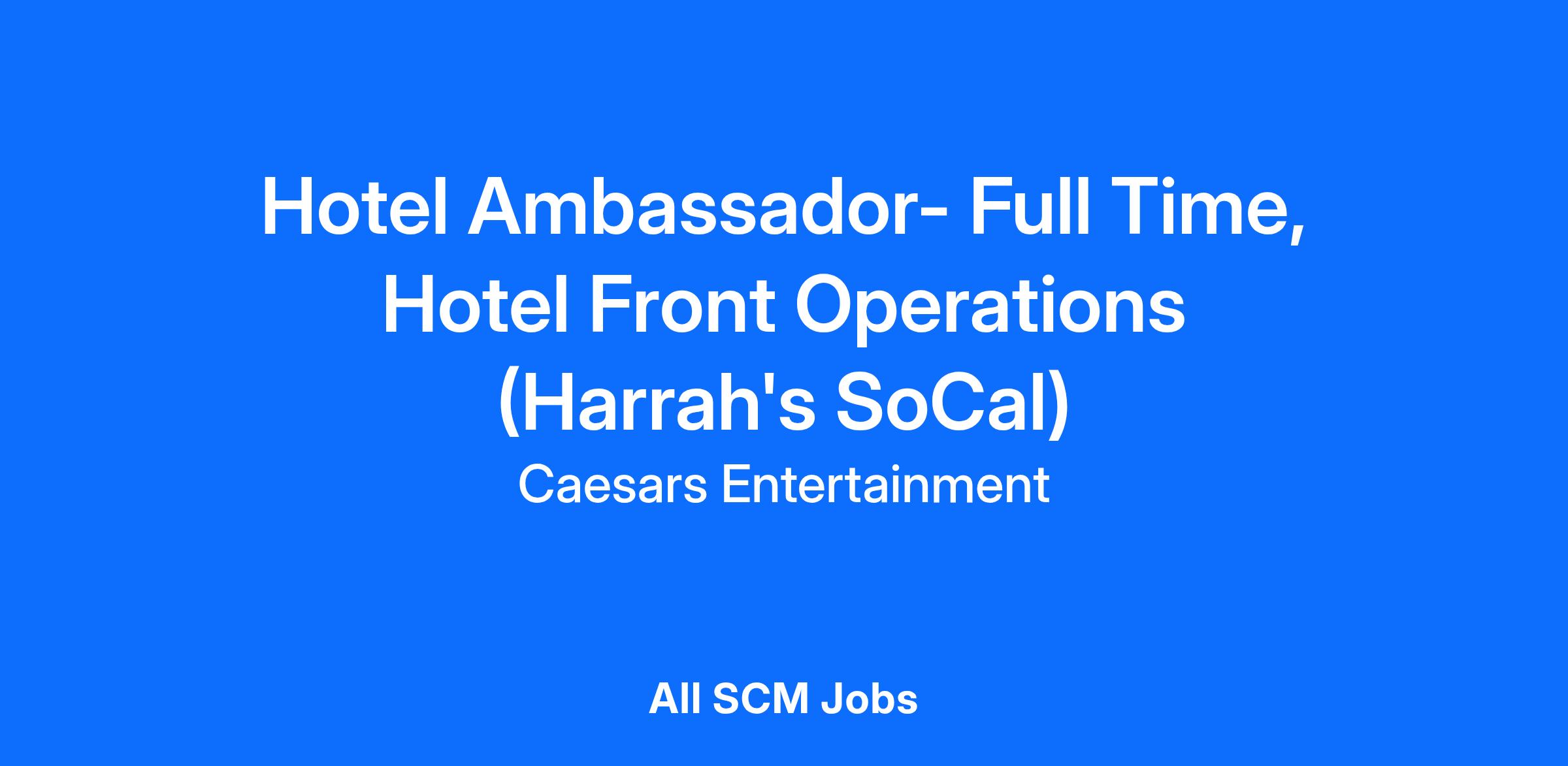 DescriptionIn conjunction with the other members of the hotel operations team, Hotel Ambassadors provide fun hospitality in a friendly manner in accordance with the Harrah’s Resort Southern California Family Style Service standards. Greets and assists each guest in a friendly and courteous manner when registering them and checking them out, as well as providing information and directions to guests regarding all services available on property. Takes ownership of guest challenges and resolves guest issues using service recovery tools.