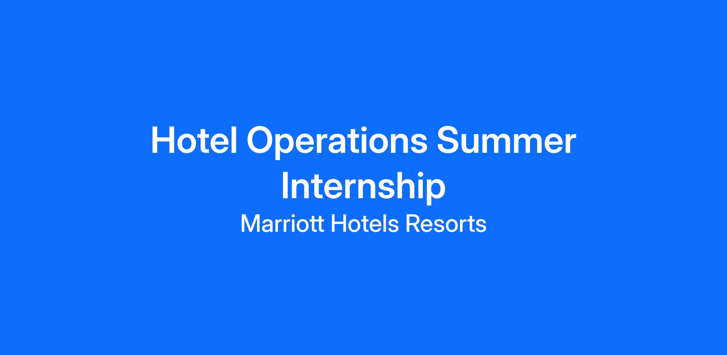 Hotel Operations Summer Internship