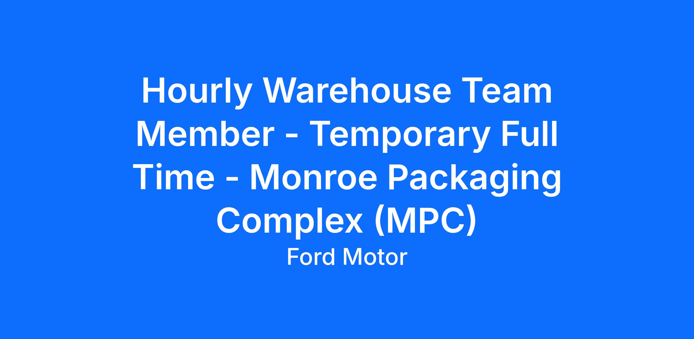 The hourly rated positions available in the Ford Motor Company Customer Service Division are warehousing positions. Warehouse employees perform a wide variety of tasks including, but not limited to, stock keeping (i.e., inventory maintenance), picking customer orders (i.e., locating and obtaining the proper items in specified quantities), and preparing shipments of orders to customers. or component using power or hand tools, hoists, or other equipment and machinery.