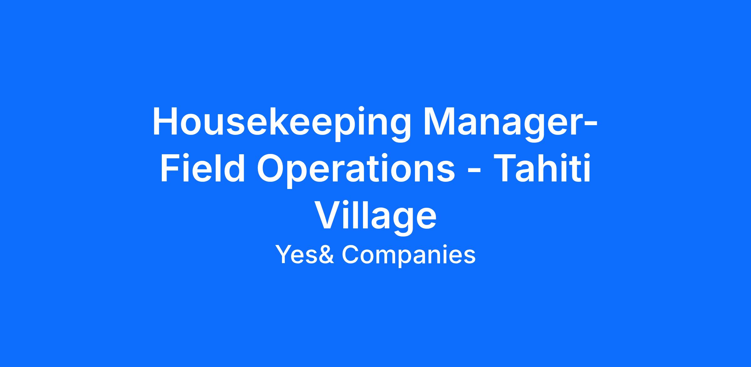 The Field Ops Manager of Housekeeping is responsible for the day-to-day operations of the Housekeeping and Common Areas departments and reports to the Assistant Director of Housekeeping. This integral role focuses on managing, maintaining, and improving the housekeeping services of the Resort. The Field Ops Manager of Housekeeping leads and ensures the Resort’s service standards are in line with the proper policies, procedures, and the brand promise.