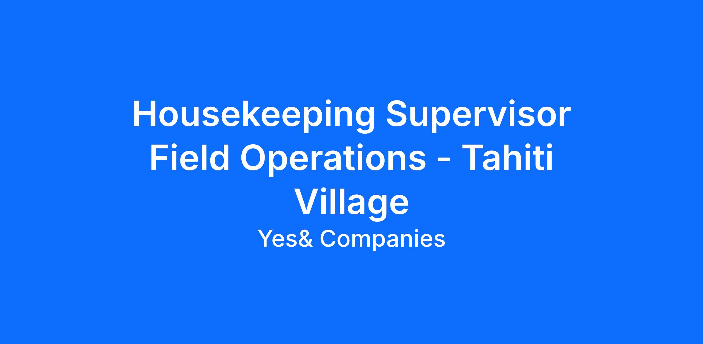 Field Operation Supervisors are not limited to the above mentioned job description and may be requested to do additional tasks as directed by Housekeeping Management Team.