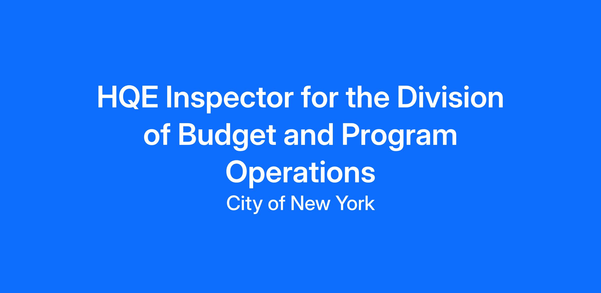 A Housing Quality Enforcement Inspector in the Division of Budget and Program Operations (BPO) conducts Housing Quality Standard Inspections of certain public housing dwelling units converting to project-based assistance. HQE inspectors will conduct Vacant, Initials and Biennial inspections for the above-mentioned units using NYCHA’s electronic handheld equipment.