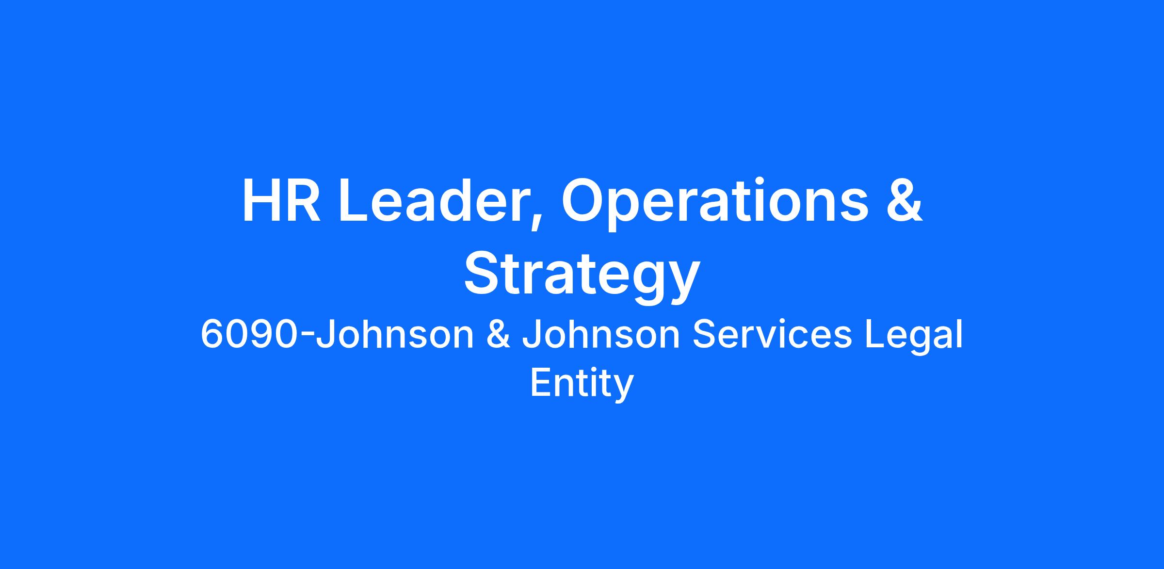 Johnson & Johnson is recruiting for HR Leader, Operations & Strategy to be located in Titusville, NJ United States.