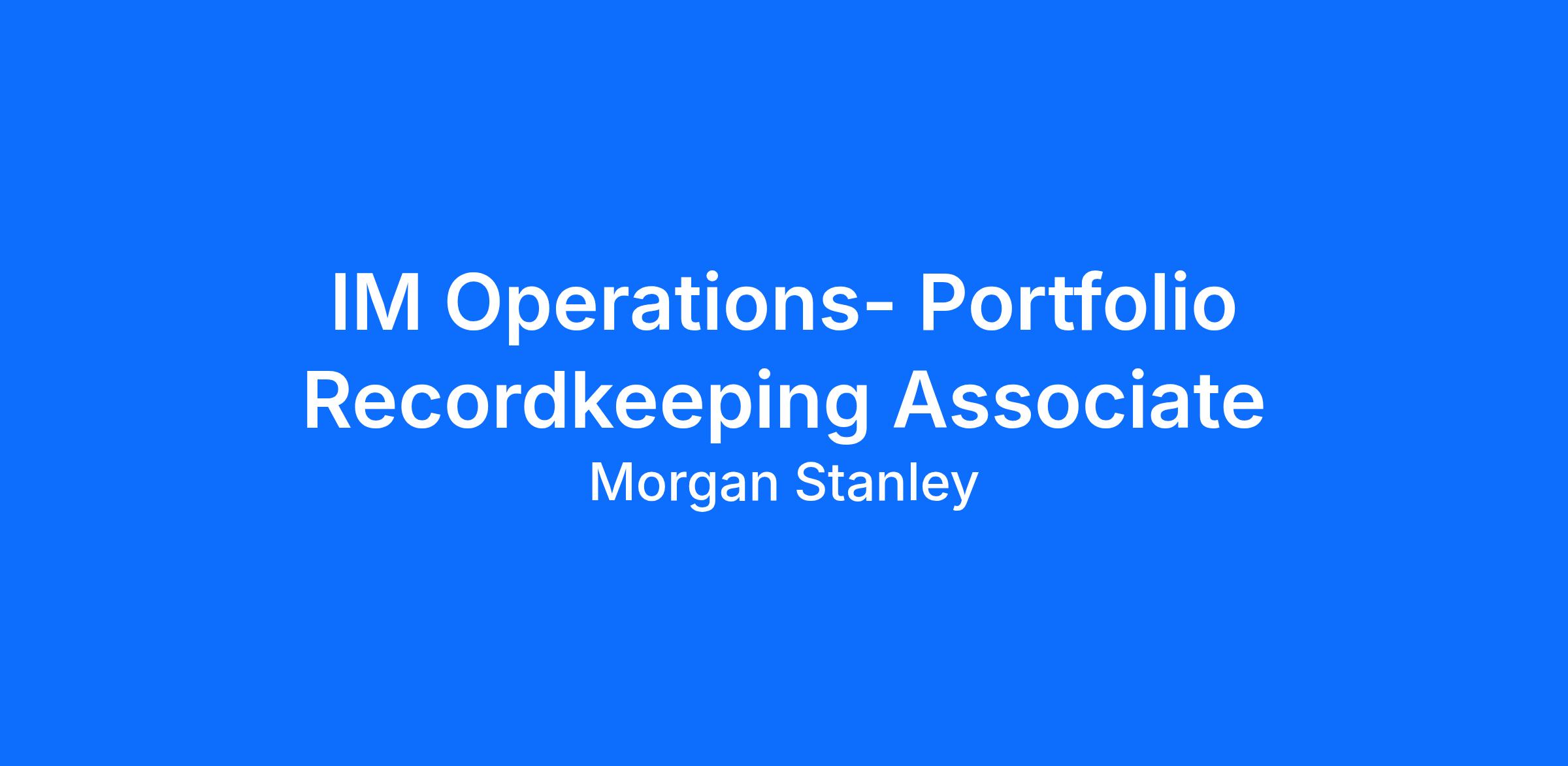 In the Operations division, we partner with business units across the Firm to support financial transactions, devise and implement effective controls and develop client relationships. This is an Associate level position within the Core Services, which is responsible for performing and managing product-agnostic and centralized operational services across several businesses and products. This role will be responsible to ensure accurate, timely, and globally consistent portfolio accounting, valuation, and production of the official investment/performance book and record. This role sits within the Public Markets Middle Office and is pivotal to ensuring data accuracy, transparency, and operational readiness across the firm's investment operations in support of MSIM clients, investment teams and traders, reporting teams and other essential uses of middle office operations data. As the Portfolio Recordkeeping Associate, you would be responsible for the daily execution of accounting and recordkeeping processes across various investment strategies and asset classes. This role will be part of a global team in a follow the sun model, ensuring the integrity of the MSIM's start of day, end of day, and period close books and records.