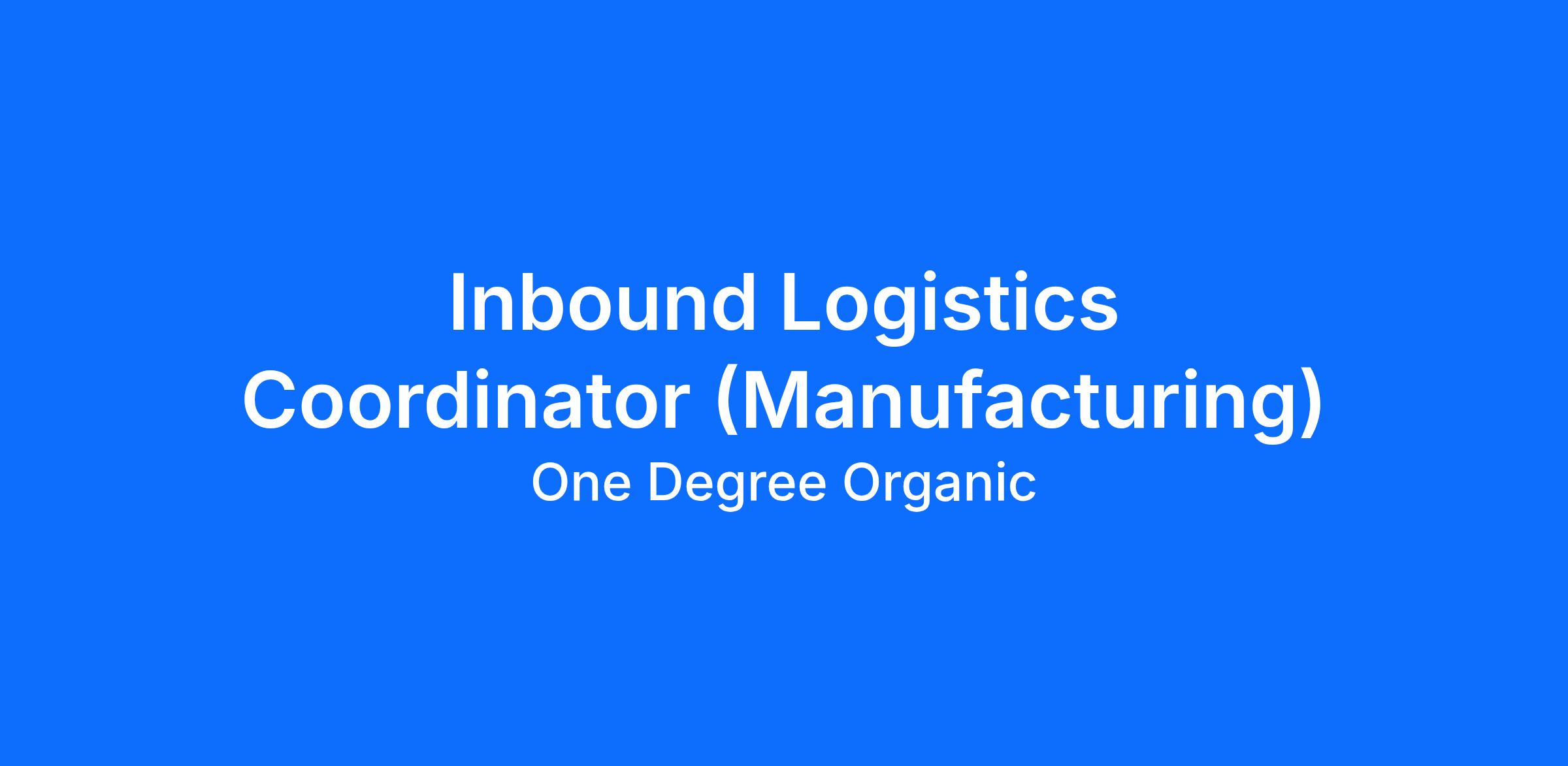 Position:Inbound Logistics Coordinator (Manufacturing) Reports to: Director of Manufacturing WAGE RANGE: $55,900 TO $67,100