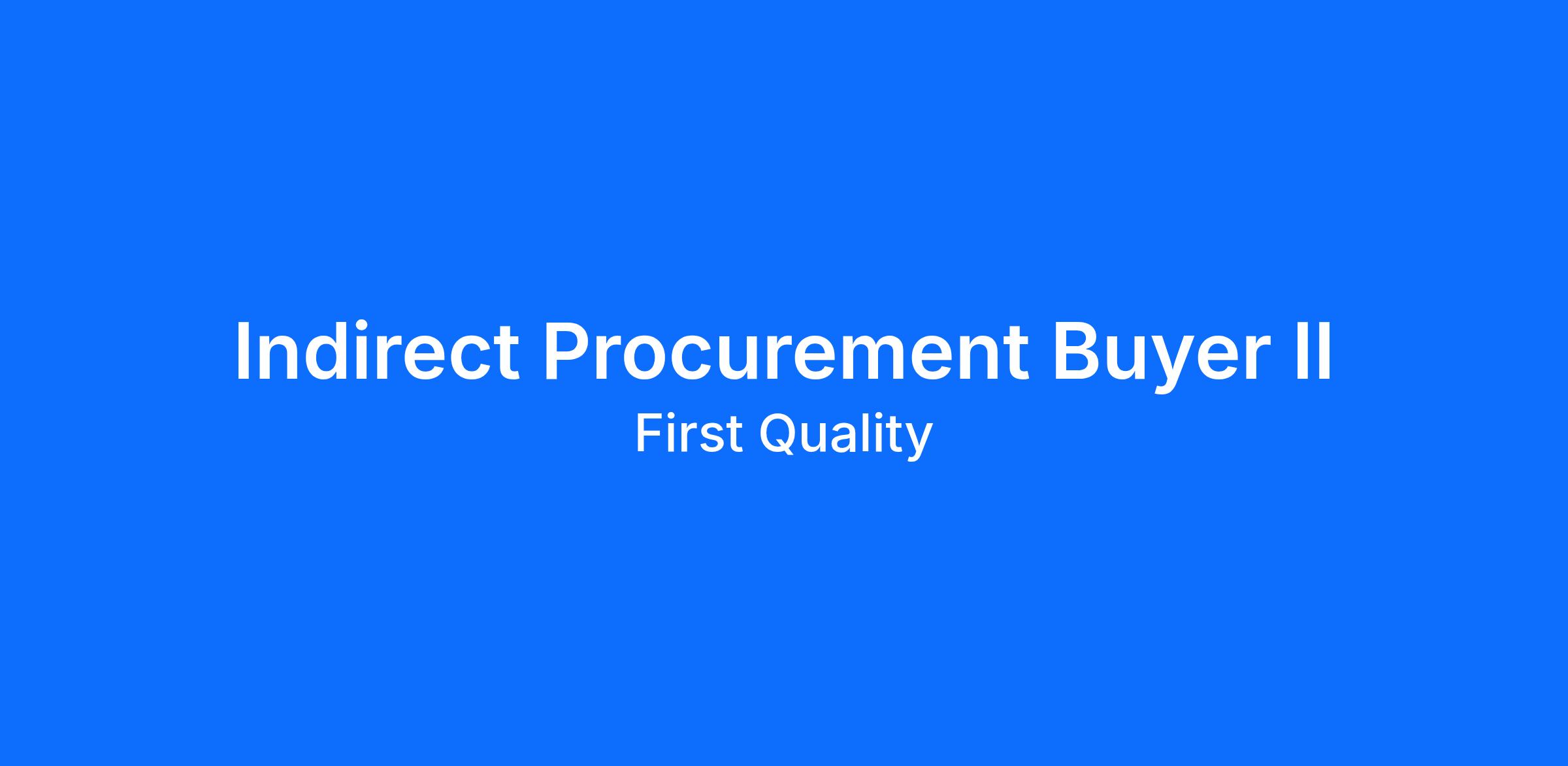 We are seeking a Indirect Procurement Buyer II for our First Quality Products Company located in McElhattan, PA. This position will be responsible for performing moderately complex procurement duties with the purpose of obtaining supplies and services from a variety of suppliers. A participation role, contributing to meetings and projects.
