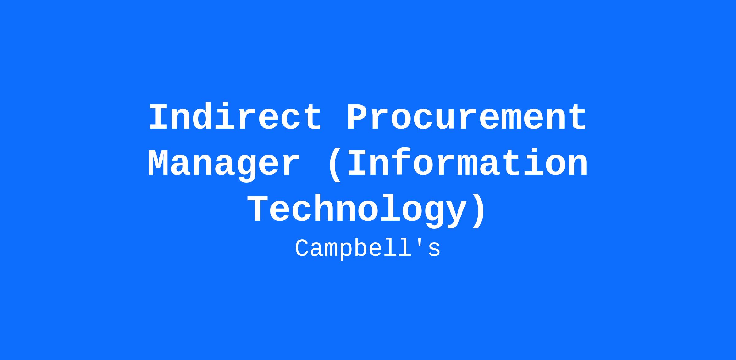 Act as Campbell’s Procurement representative to suppliers of IT Telecom, Software, Services and Hardware.