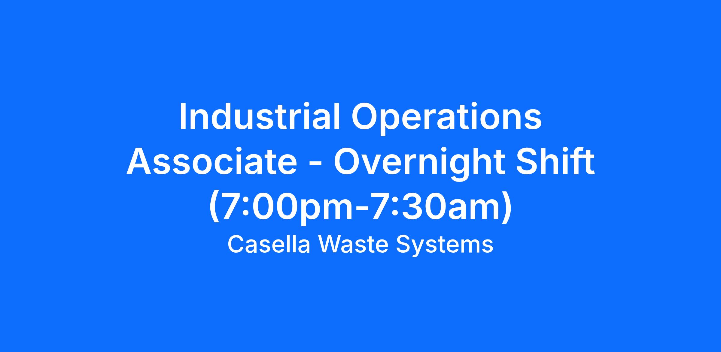 We are currently hiring for the Overnight Shift - 7:00pm-7:30am