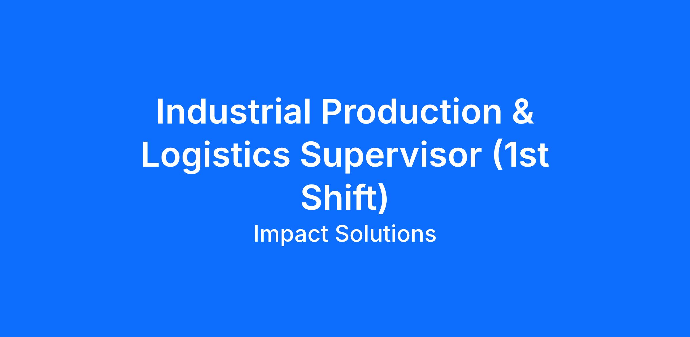 Industrial Production & Logistics Supervisor (1st Shift)