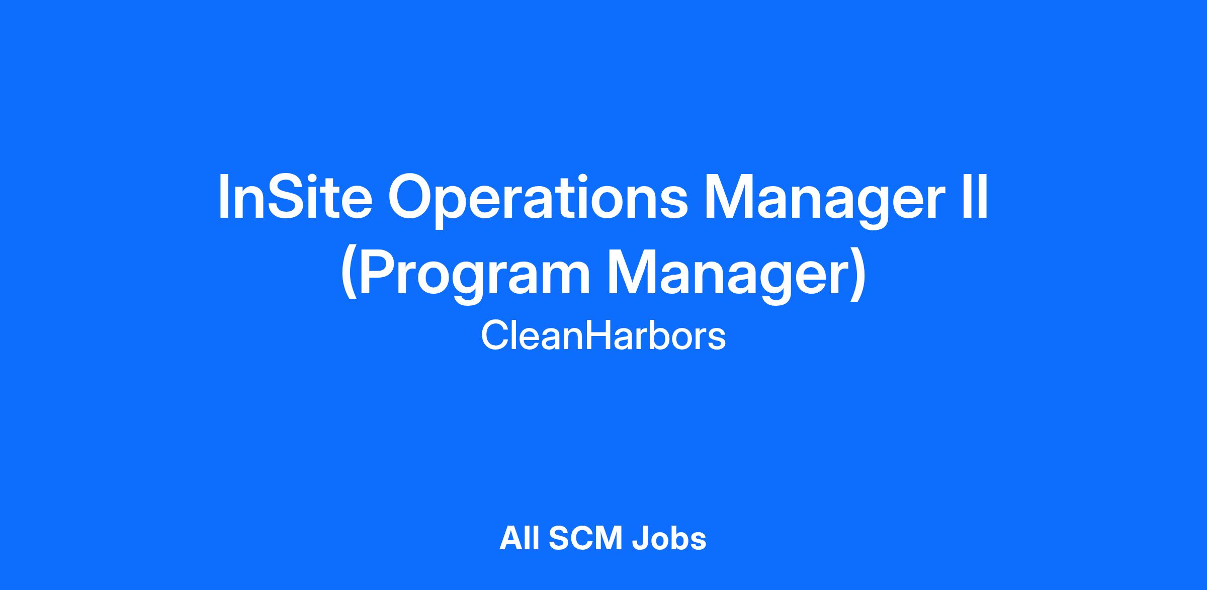 DescriptionClean Harbors is seeking an InSite Operations Manager II- Program Manager, this position is responsible to oversee all Company activities and manage the InSite staff on the customer site.