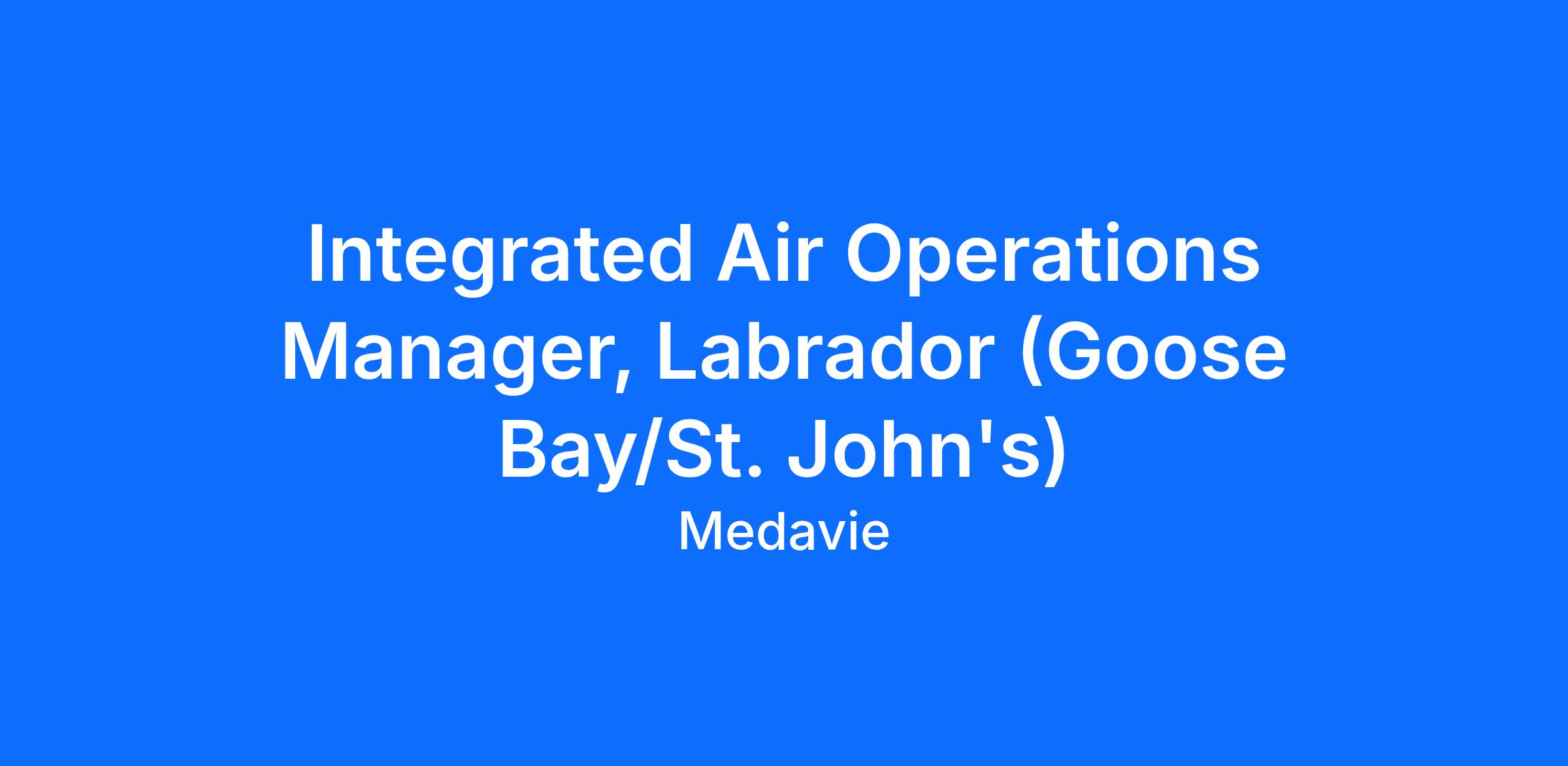The Integrated Air Operations Manager, Labrador is responsible to manage staff and systems to meet the performance requirements of the air and ground Ambulance program as well as the Coastal Labrador Air Service. The Manager will assist with the Company Corporate Strategic Goals, build staff capabilities, and implement changes to improve service levels. The overall general role of this position is to direct and provide oversight for the workforce in a positive manner. This position will primarily report to the Director Integrated Air Program with an indirect report to the Director Operations.