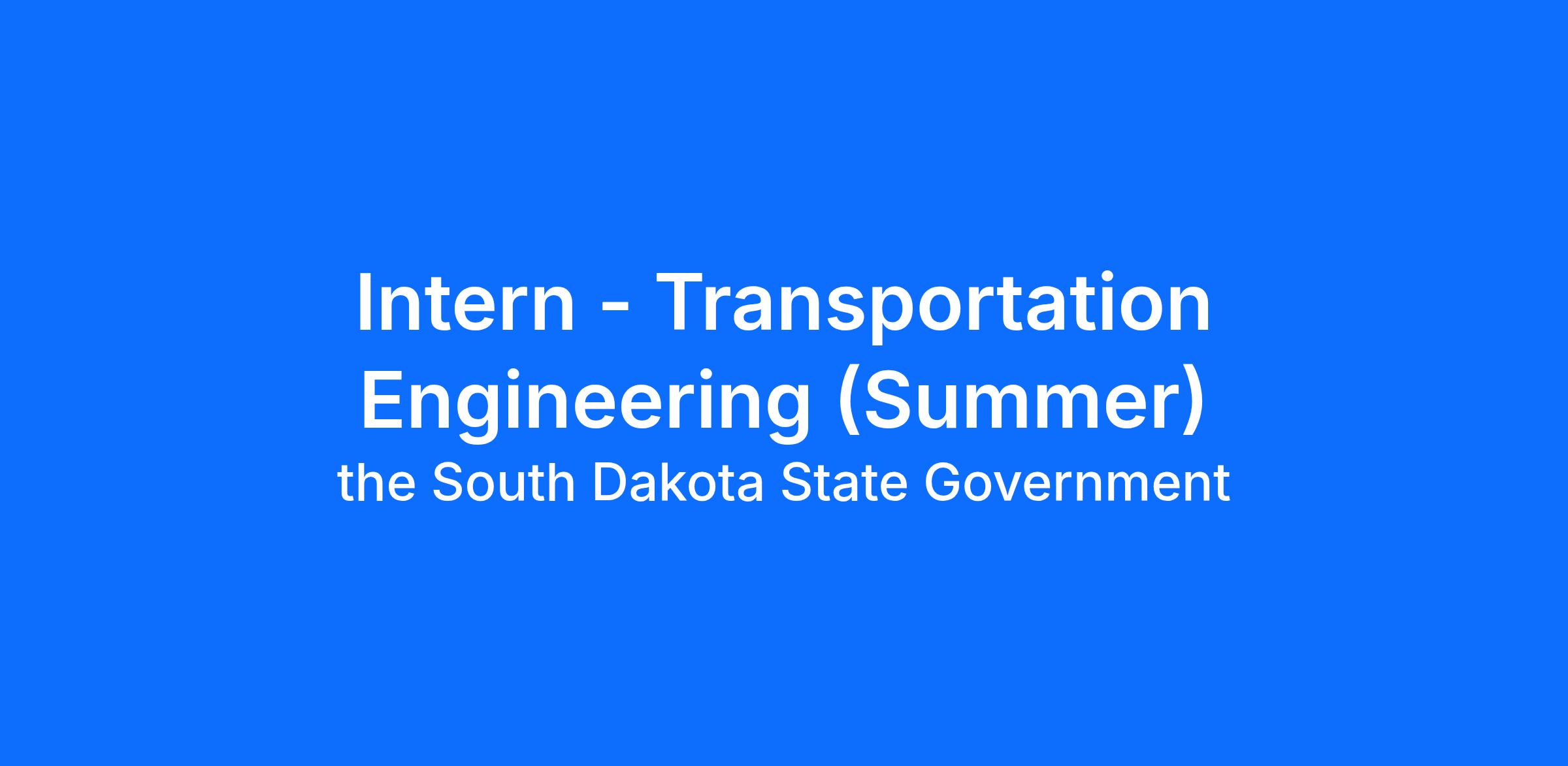 Session: Summer (May - August) Position Title:Intern - Transportation Engineering (Three positions) Hiring Manager: Kevin Heiman Agency:Department of Transportation / Yankton Area Office Location: Yankton Area (Primary), Beresford/Vermillion/Tyndall Minimum Salary: $22.19 (Non-Engineering Students) and $24.73 (Engineering Students)