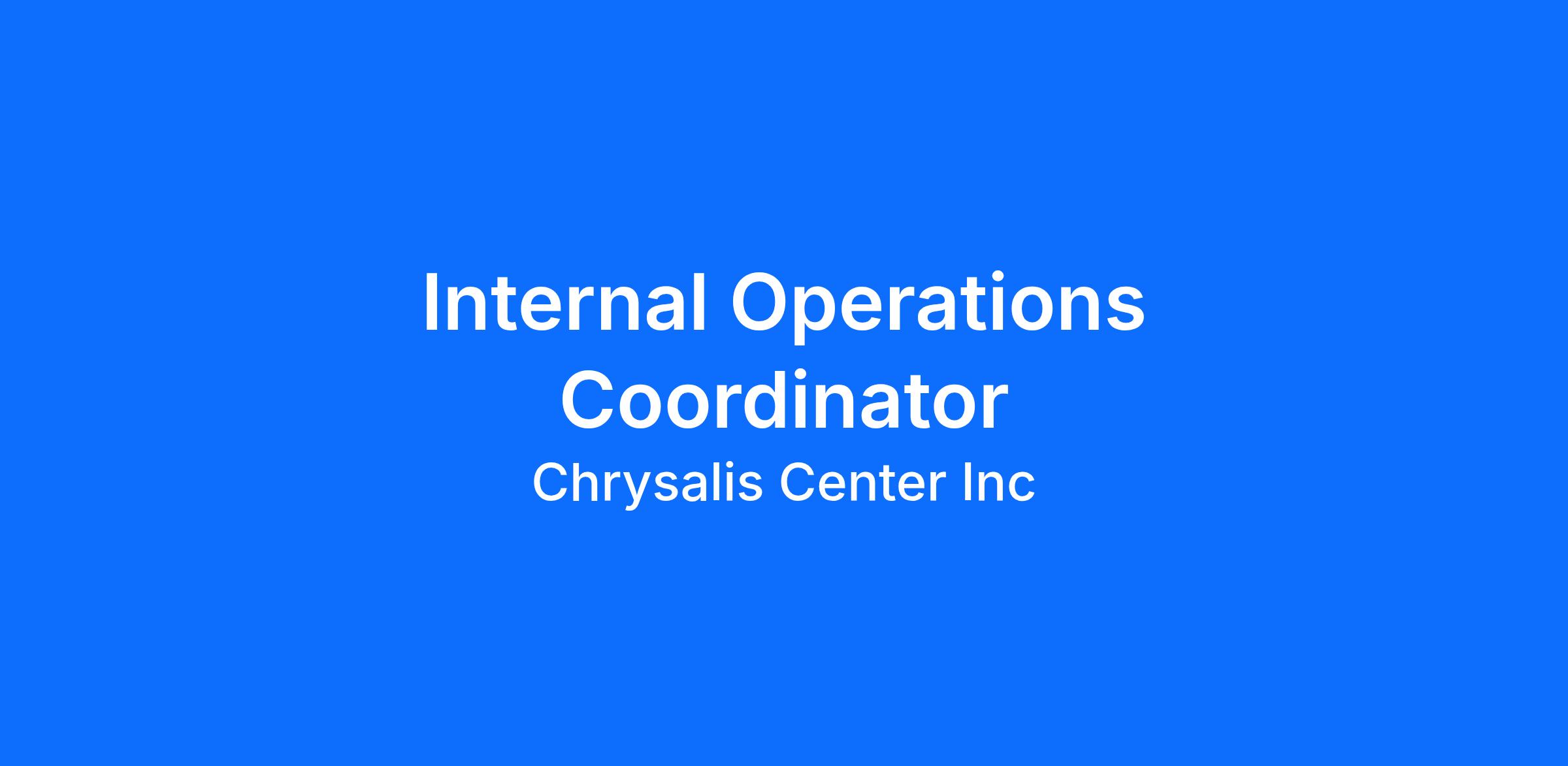 The Internal Operations Coordinators (IOC) are part of the Internal Operations team which handles the coordinated back-office duties for all Chrysalis Employment Social Enterprises (ESE’s). The team's duties include, but are not limited to, managing CE’s vehicle fleet, instituting electronic payroll for transitional employees, recruiting client employees into a pool of driver candidates, and the ordering/tracking of all necessary equipment and supplies. In addition, this team is responsible for the initial client employee programmatic experience from the time of referral through onboarding to placement into a respective ESE. The IOC position has varied levels of responsibility for all the team’s duties listed above. This position works closely with staff in the ESE’s and throughout all departments of Chrysalis.