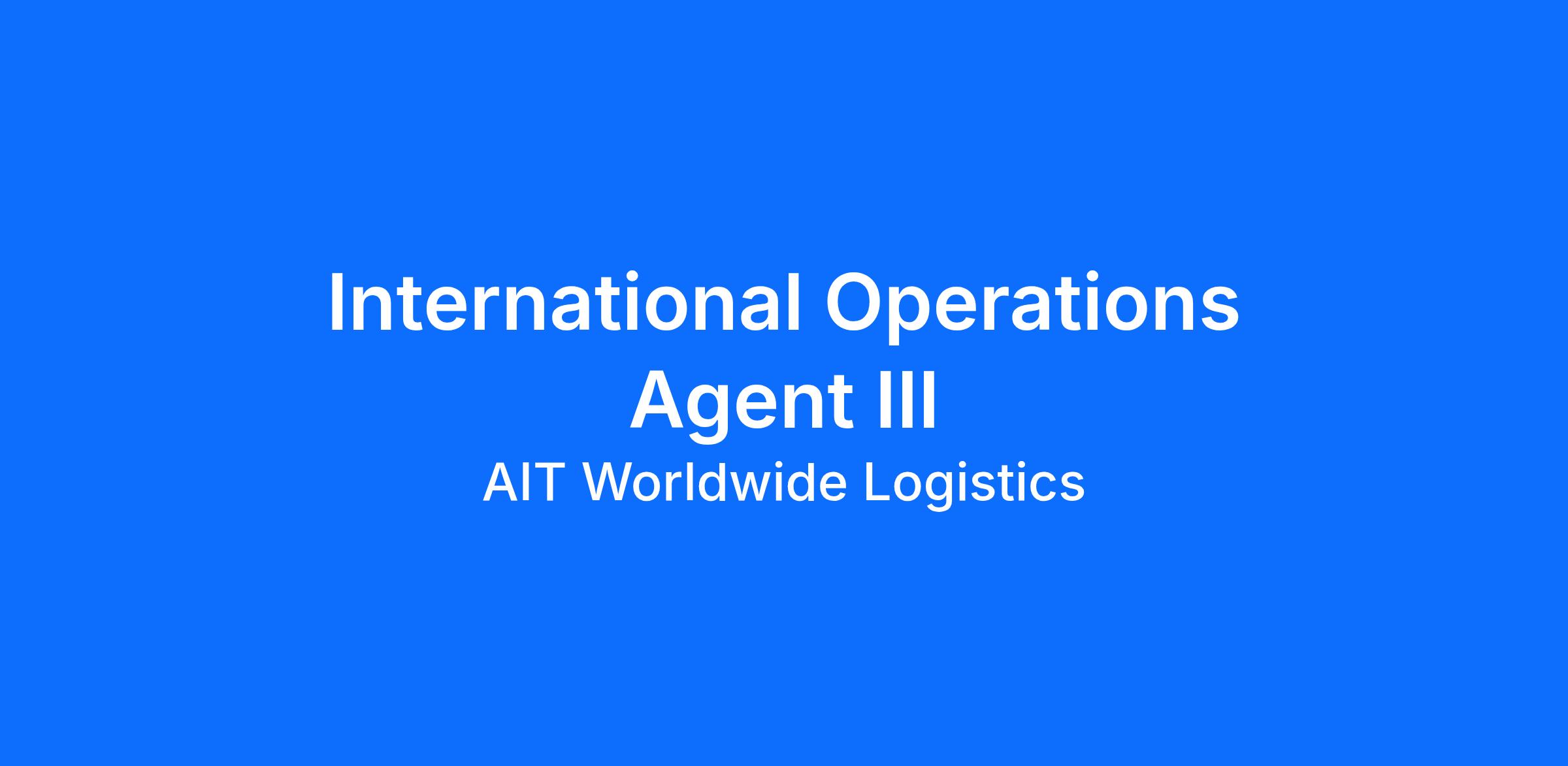 The International Operations Agent III is responsible for coordinating the day to day import/export of international freight forwarding shipments into and out of the USA across all modes of international transportation based upon customer requests.
