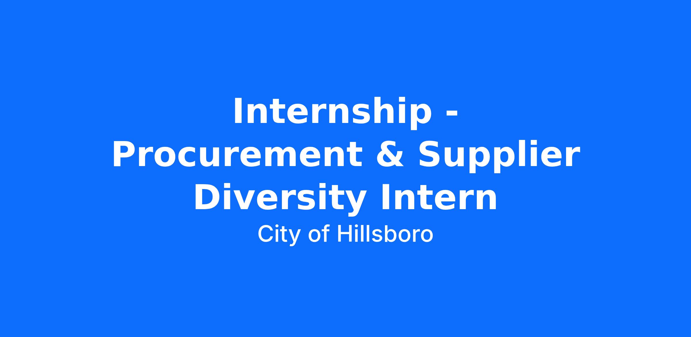 The City of Hillsboro’s Finance Department is seeking a Procurement & Supplier Diversity Intern to support procurement and supplier diversity initiatives this summer.