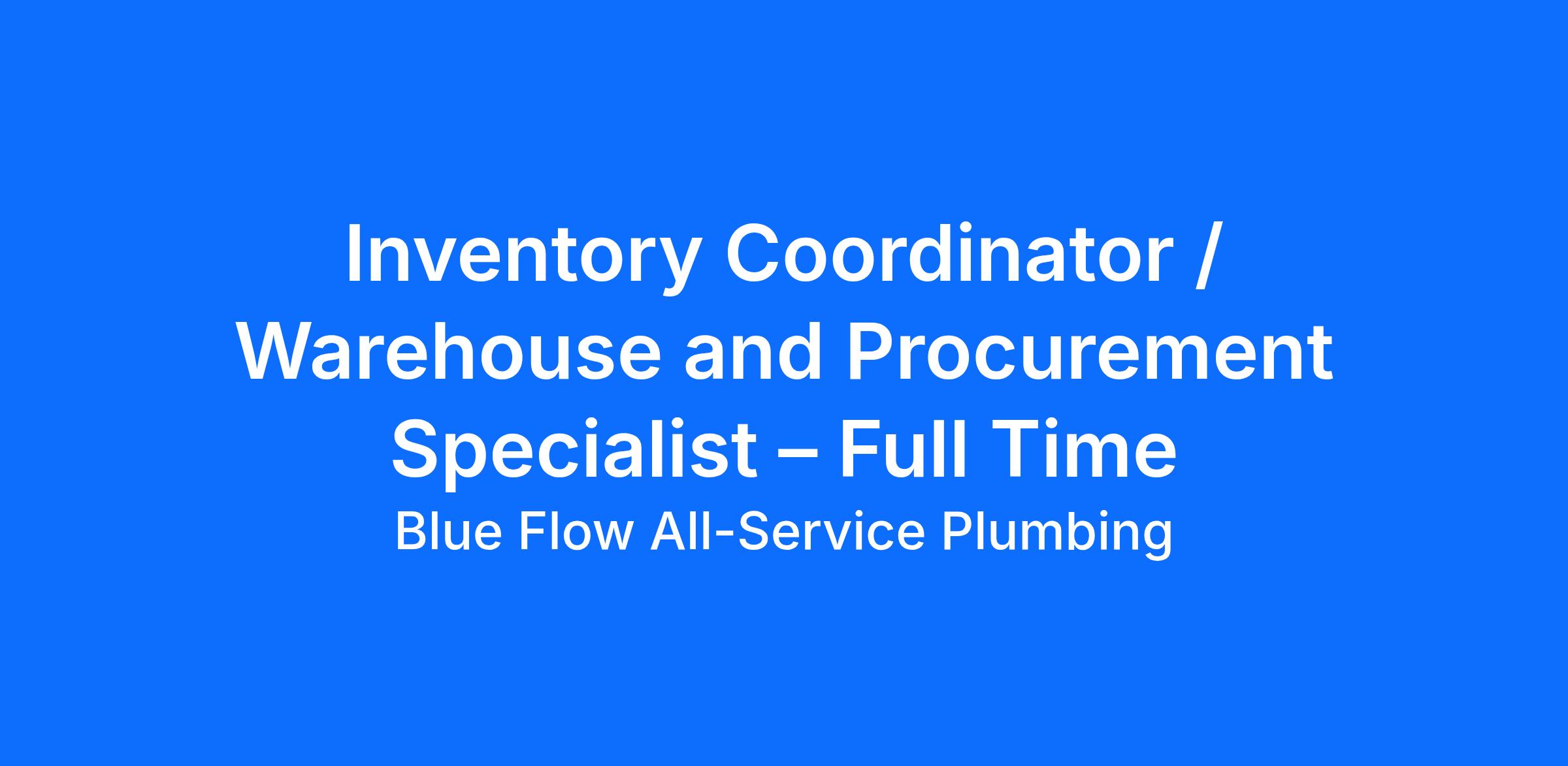 At Blue Flow All Service Plumbing, we are setting the standard for plumbing services across the Southeast. To keep our operations running at peak performance, we are hiring an Inventory Coordinator with expertise in warehouse management, inventory control, procurement, logistics, and vendor management.