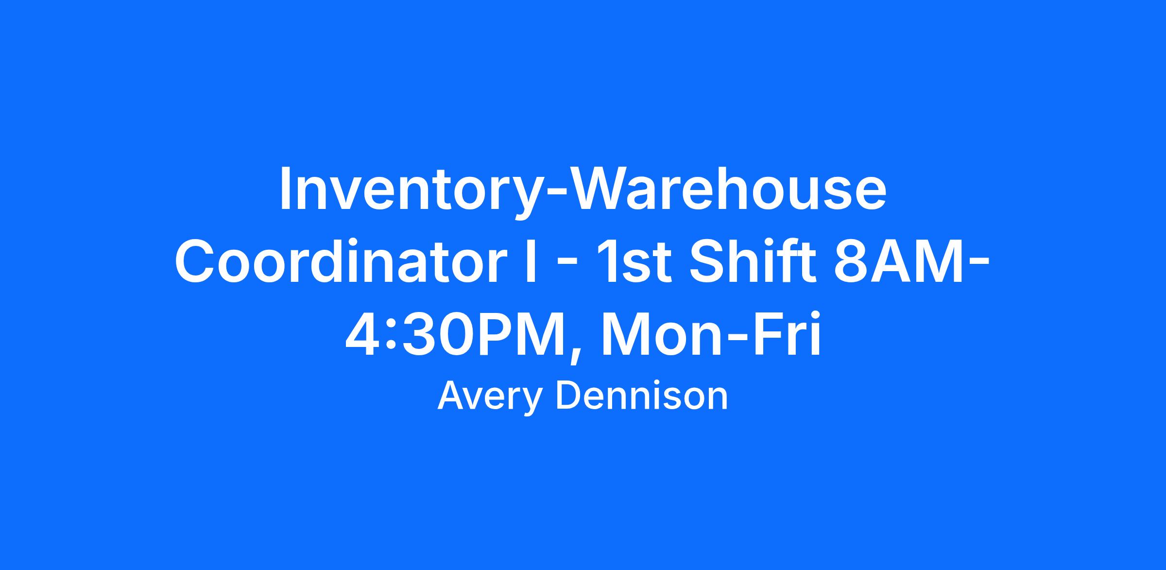 The Inventory/Warehouse Coordinator supports all supervisors and production with operational functions pertaining to inventory product maintenance, preservation, identification, movement and replenishment. In this role, you will work 1st Shift 8AM- 4:30PM, Mon-Fri.