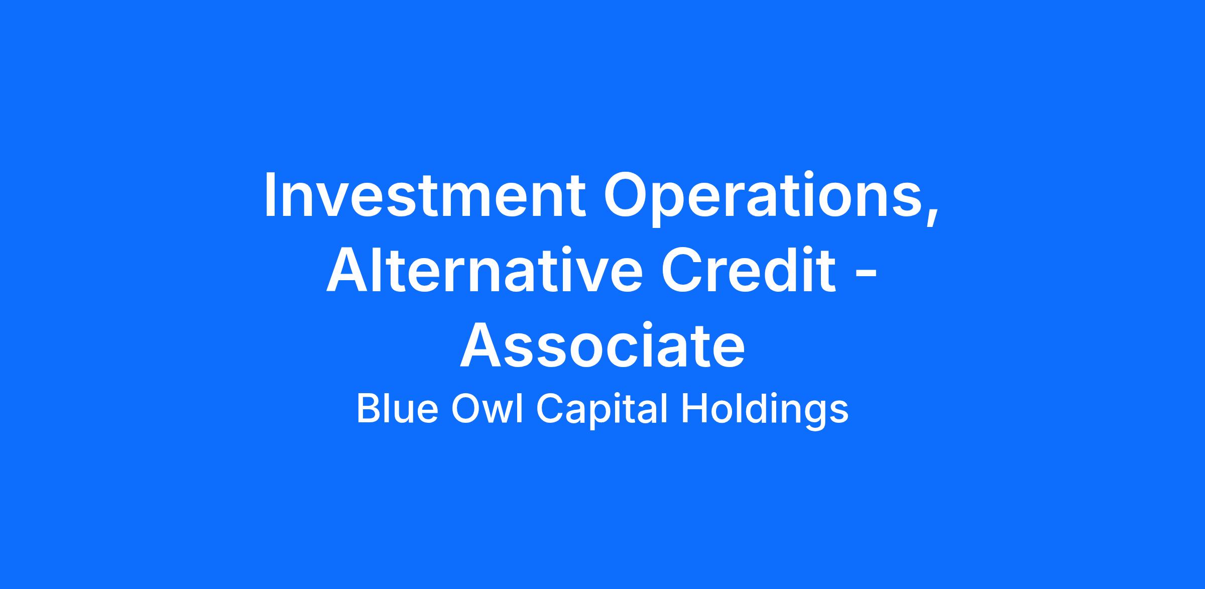 Work very closely with Blue Owl’s Alternative Credit investment team in order to meet the responsibilities of the position