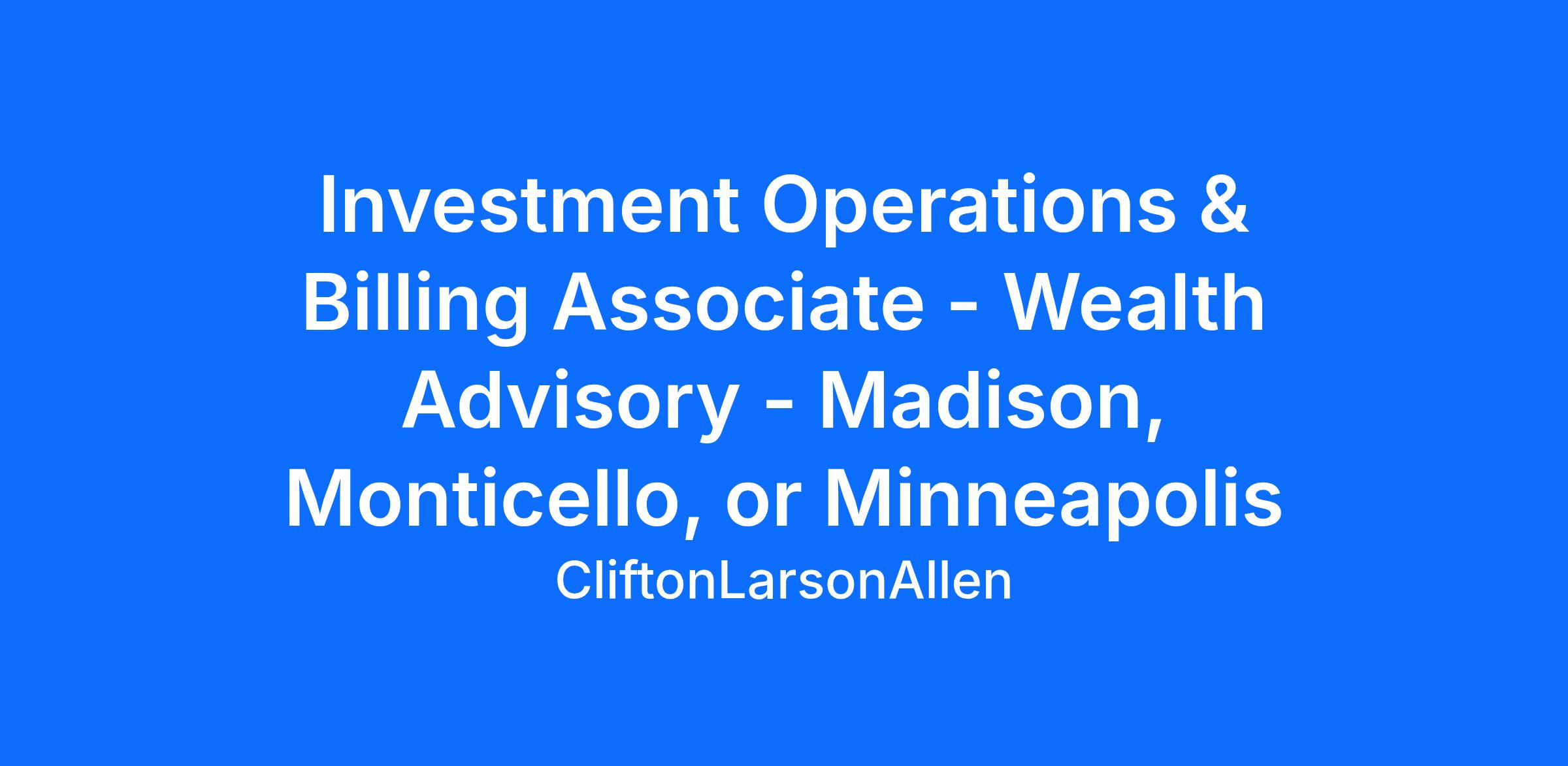 This role is responsible for supporting the day-to-day operations of wealth advisory investments and billing/reporting processes. This role ensures the accuracy and quality of information in client-facing reports and dashboards, and provides high-quality service for clients.