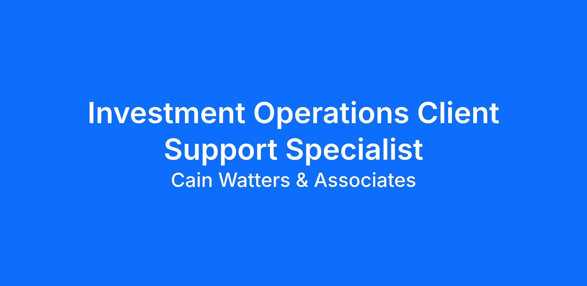 Reporting to the Investment Operations Manager, the Investment Operations Client Support Specialist is responsible for onsite support related to coordinating, implementing and maintaining all investment account openings, and service requests while maintaining confidentiality of client information.