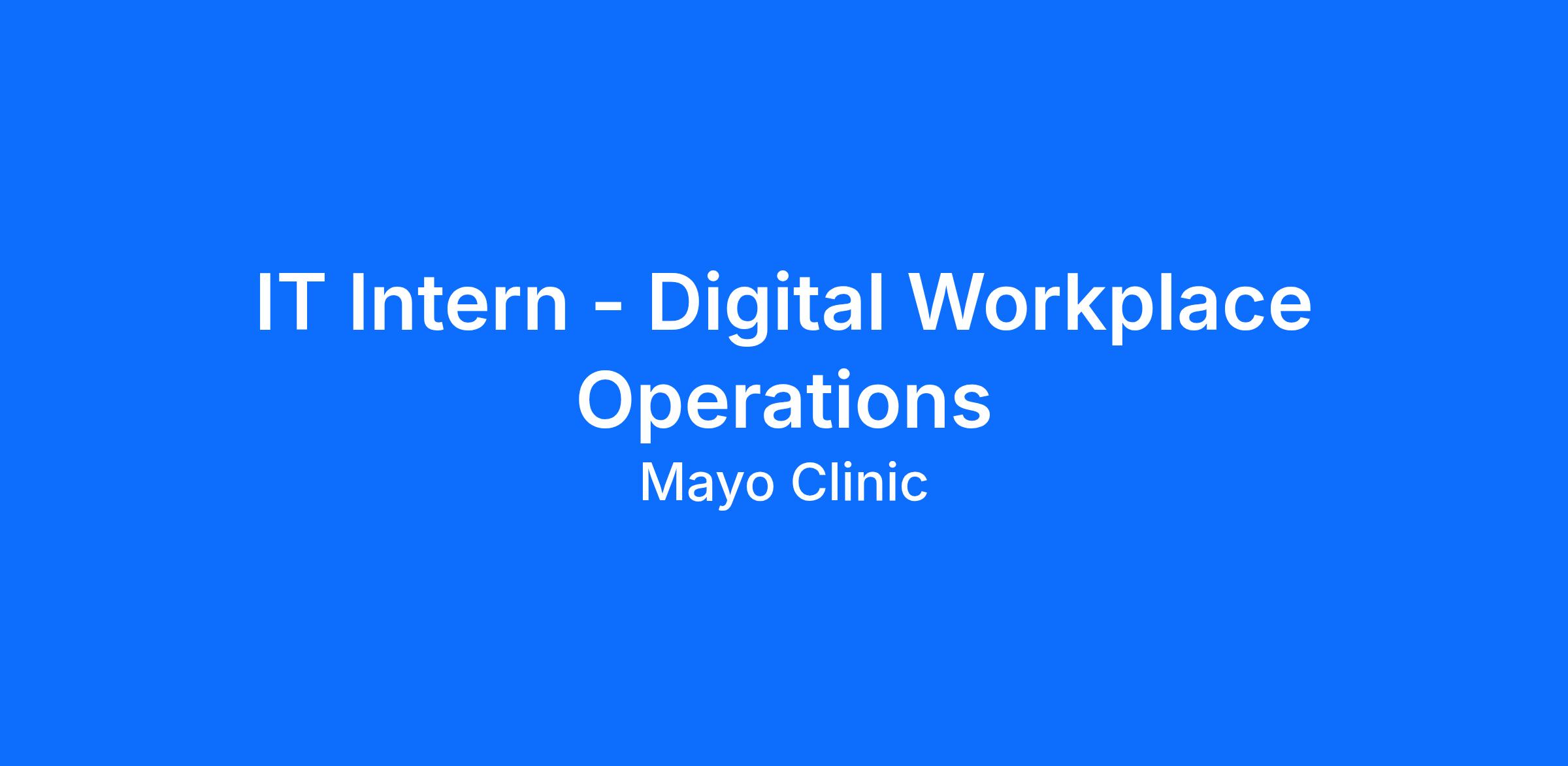 The primary purpose of the Internship is to provide an intern with relevant field experiences in their chosen field of study. One or more mentors will be assigned to the intern to provide instruction, guidance and to assess performance. The intern is responsible for observing the functions and processes of the assigned work unit. In addition, the intern may be given selected work assignments to reinforce the learning experience, to assess the performance levels and to provide benefit to the work unit. The intern will be responsible for completing all internship-related assignments and reports for both Mayo and the participating educational facility. The duration and timing of the internship will be arranged with the intern.