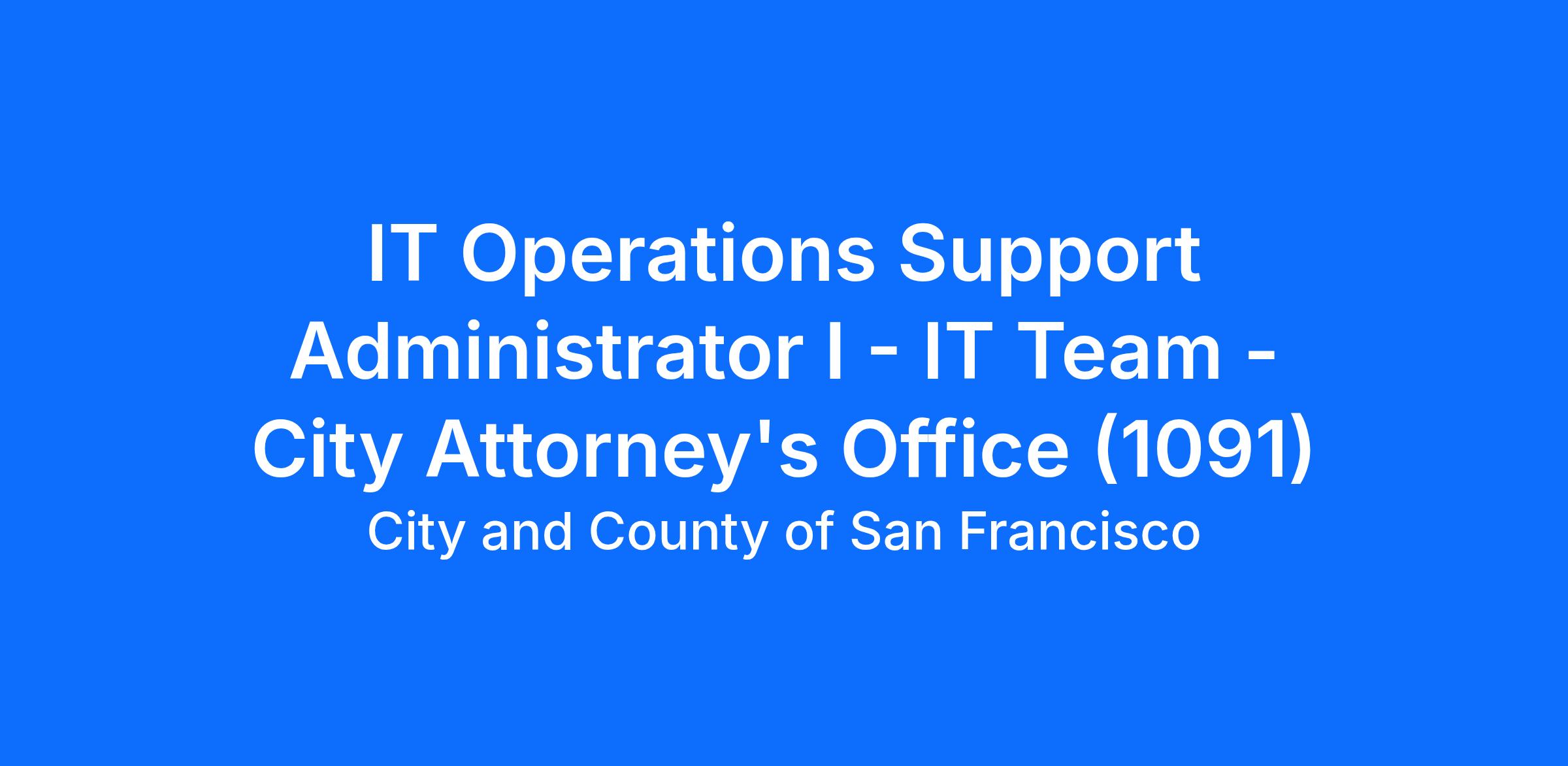 The San Francisco City Attorney’s Office is looking for an experienced, qualified, and motivated professional to join its Information Technology (IT) Team as an IT Operations Support Administrator I.