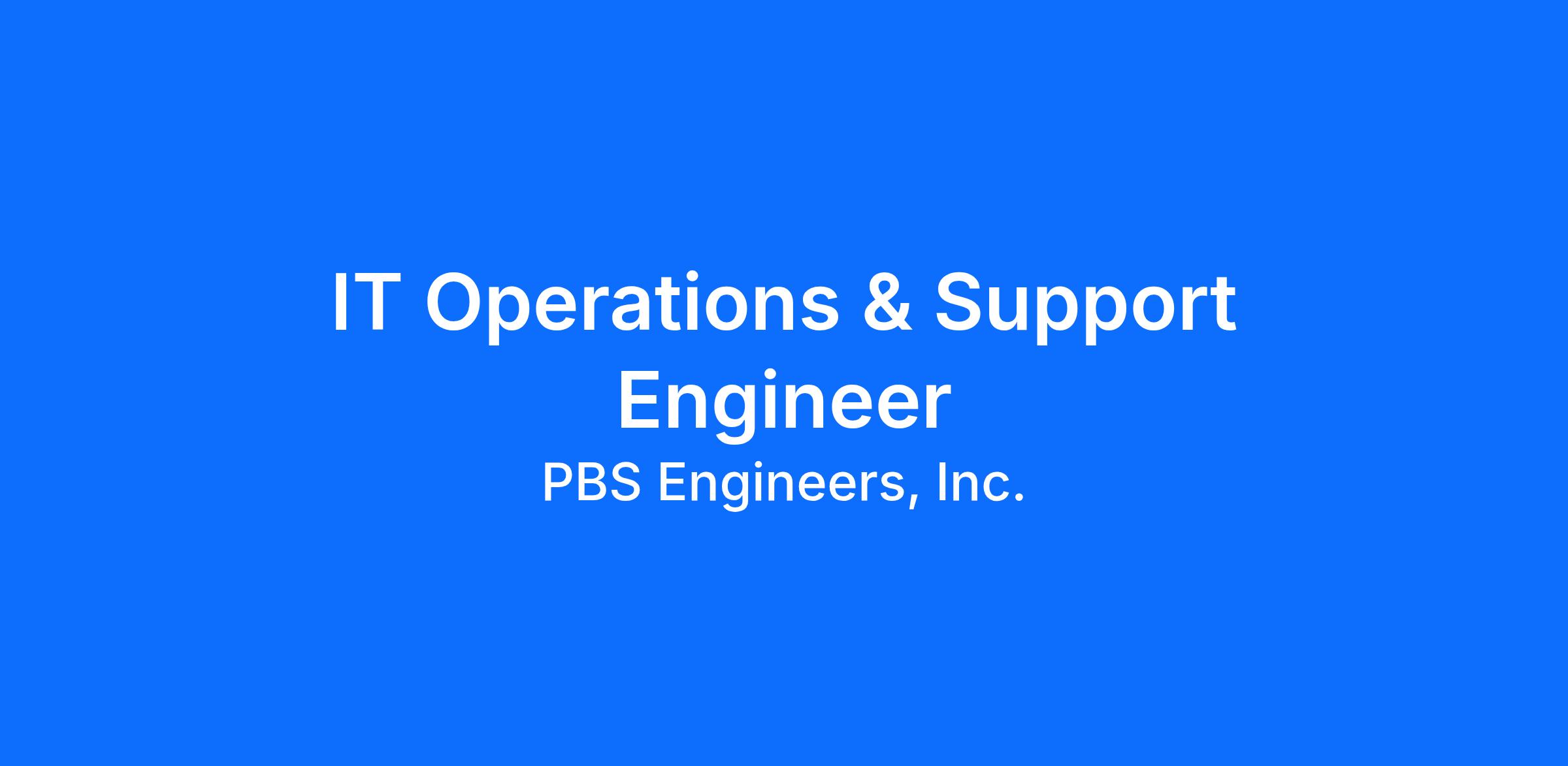 At PBS Engineers, IT is a strategic partner to our engineering teams. This role offers hands-on exposure to enterprise IT operations, cloud technologies, and infrastructure projects while directly supporting professionals who design and build critical facilities. We invest in our people, expect ownership, and live our WeRise values while delivering WOW through service.