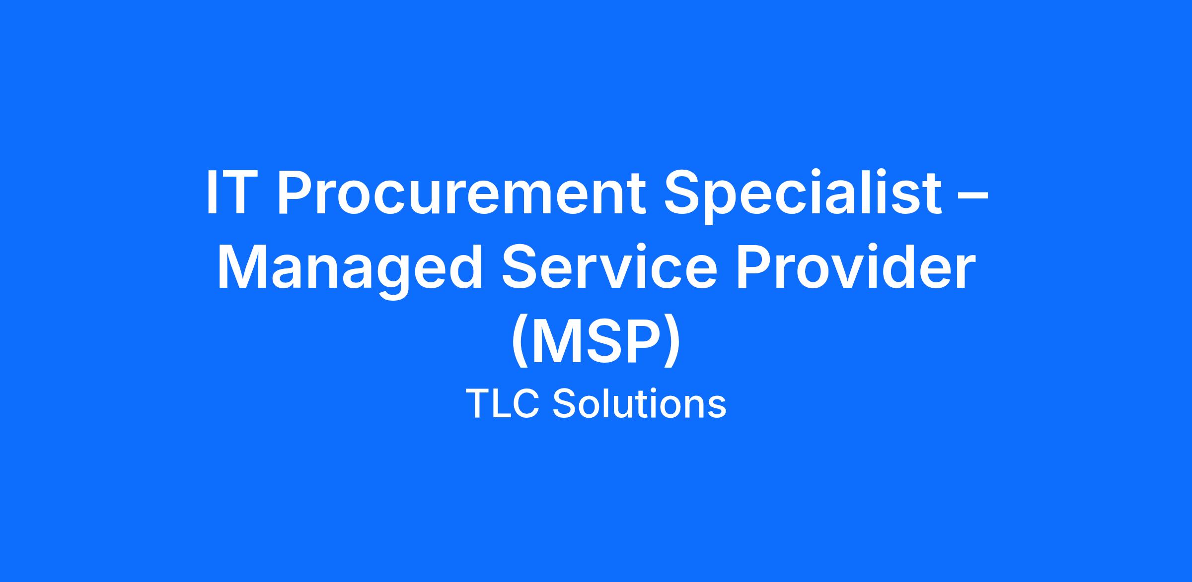 IT Procurement Specialist – Managed Service Provider (MSP)