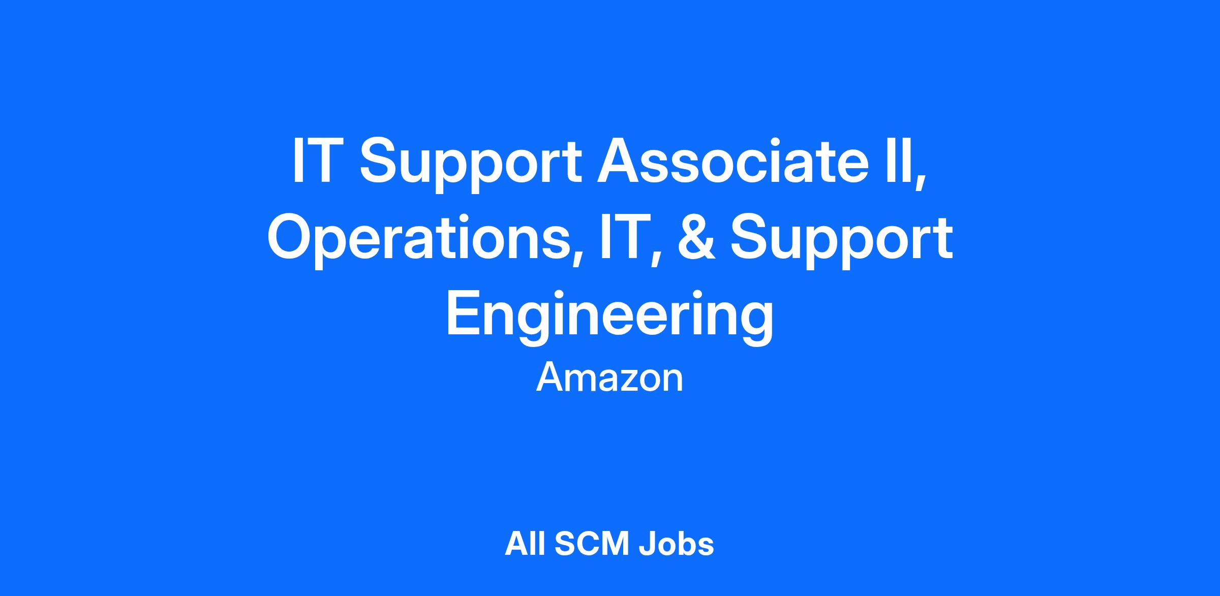 As an IT Support Associate II, you will use your skills to support the operations team in resolving technical problems within Amazon operations facilities in a defined geographical area that span across a multitude of technical disciplines. We are committed to improvement; you will be encouraged to participate in career development opportunities as presented to progress your career at Amazon.